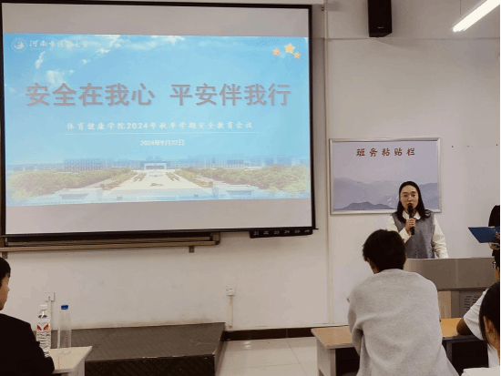 本网讯(文/李一凡 图/张心怡)为激励学院新生坚定理想信念,适应大学生活,成为德智体美劳全面发展的时代新人,2024年9月22日,在嵩山少林武术职业学院举行2024级新生开学第一课,体育健康学院党委副书记张慧俭、辅导员郝恬然、李一凡及2024级全体新生参加活动。