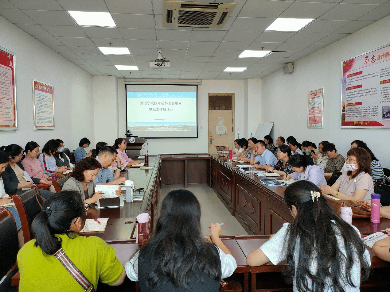 本网讯(文/图 闫舒瑶)为营造良好的学术科研氛围,激发教师参与国家级项目申报的积极性,切实提高国家社会科学基金项目申报质量,2024年9月24日,外语学院在综合教学楼A638会议室召开了2025年国家社科基金项目申报工作启动会。外语学院领导班子、全体教师参会。