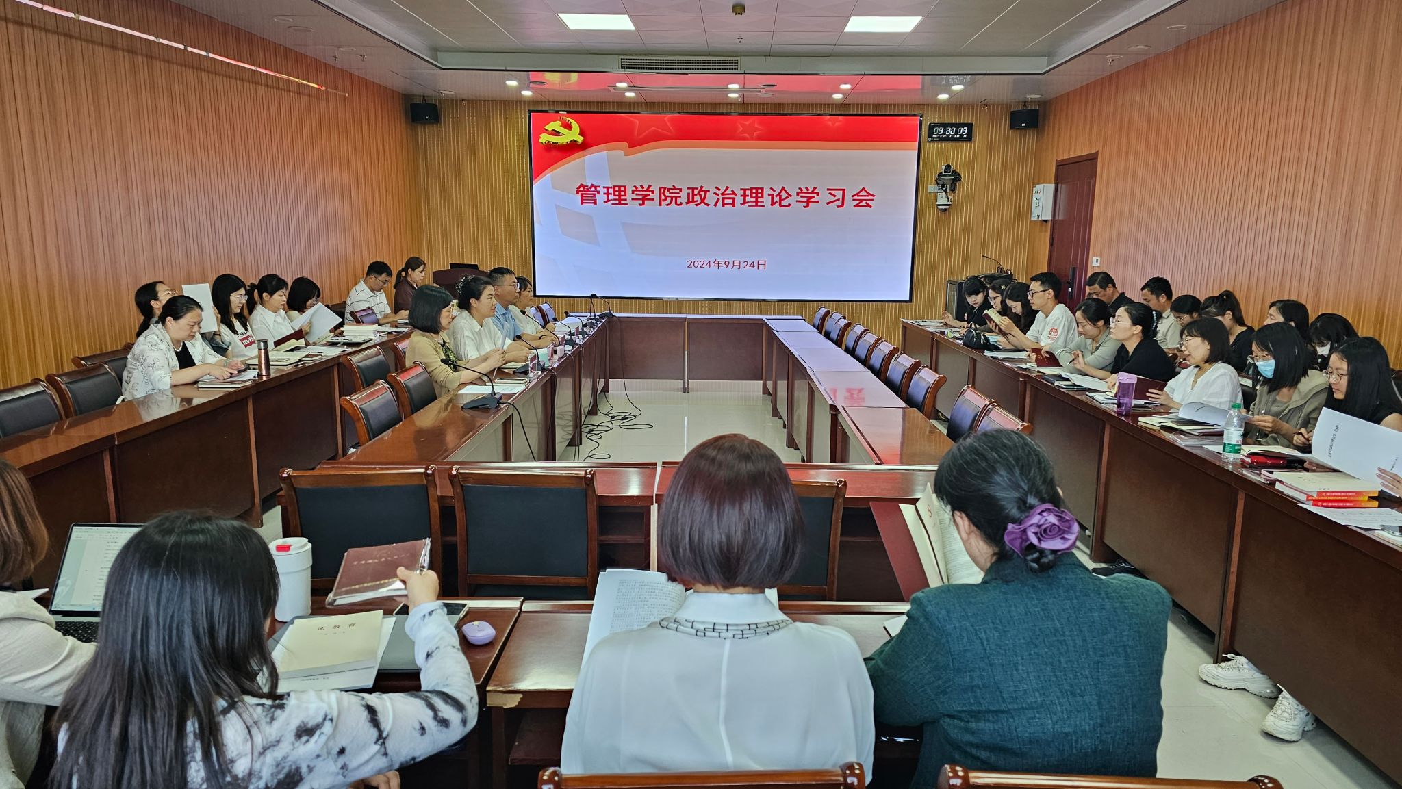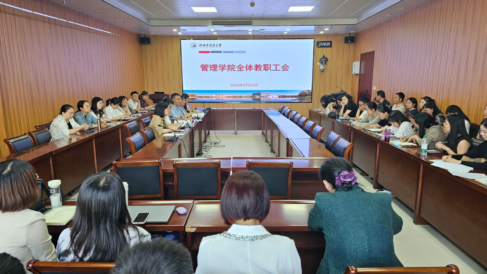 本网讯(文/黄璐 赵聪慧 图/杨静静)2024年9月24日,管理学院在教学实验大楼BM801召开全体教职工会议暨政治理论学习会,学院领导班子、全体教职工参加,会议由党委副书记毛海燕主持。