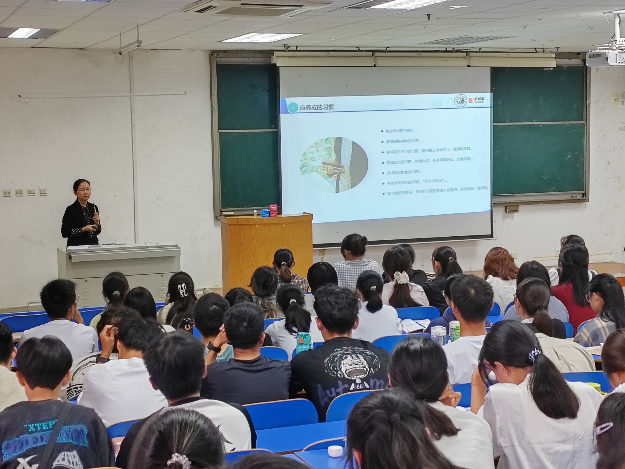 MSU讲座,拓宽教育视野。马来西亚管理与科学大学(MSU)药学院副院长Ibrahim为新生介绍了MSU多元化的文化氛围和优质的师资力量,展示了教育资源国际化、人才培养国际化、教学模式创新、留学机会与成本效益以及学术研究与国际合作资源平台等内容。同时,Ibrahim老师分享了自己的微信号,学生们纷纷表示,期待在未来的学习中,能够与MSU的老师们进行更加密切的交流,拓宽自己的国际视野,提高专业能力。