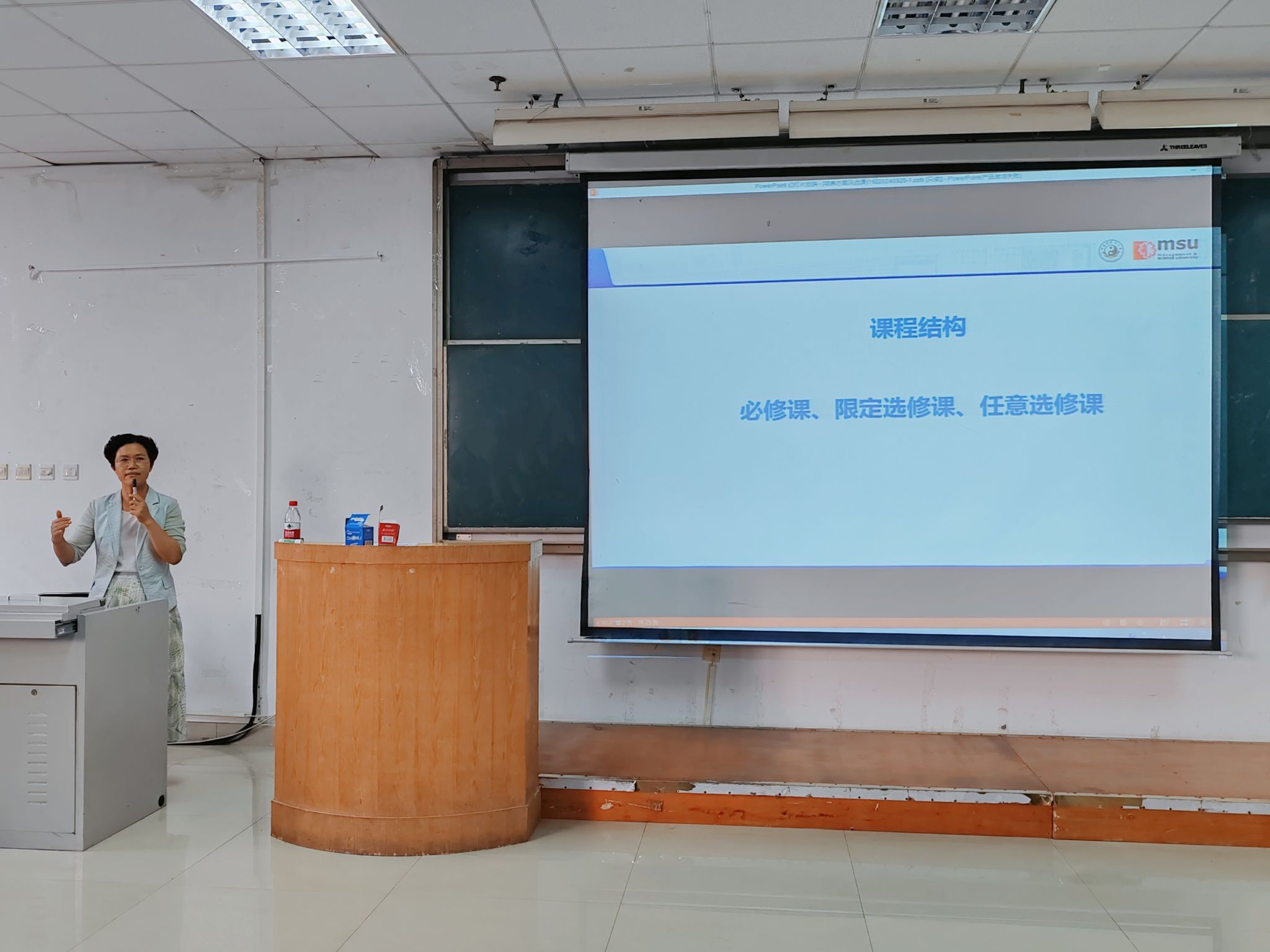 特色培养,科学规划学业。学院院长卢萍介绍了学校的基本情况、联合学院的发展历程和办学基本情况。从中外合作办学优势、办学理念,各专业人才培养方案的制定、引进课程的特点和教学安排等方面为大家介绍了中外合作办学专业独特的培养模式。鼓励新生勇于接受挑战、不断提高语言表达能力和自主学习能力,尽快适应大学学习,提升自己的专业素养和综合能力。