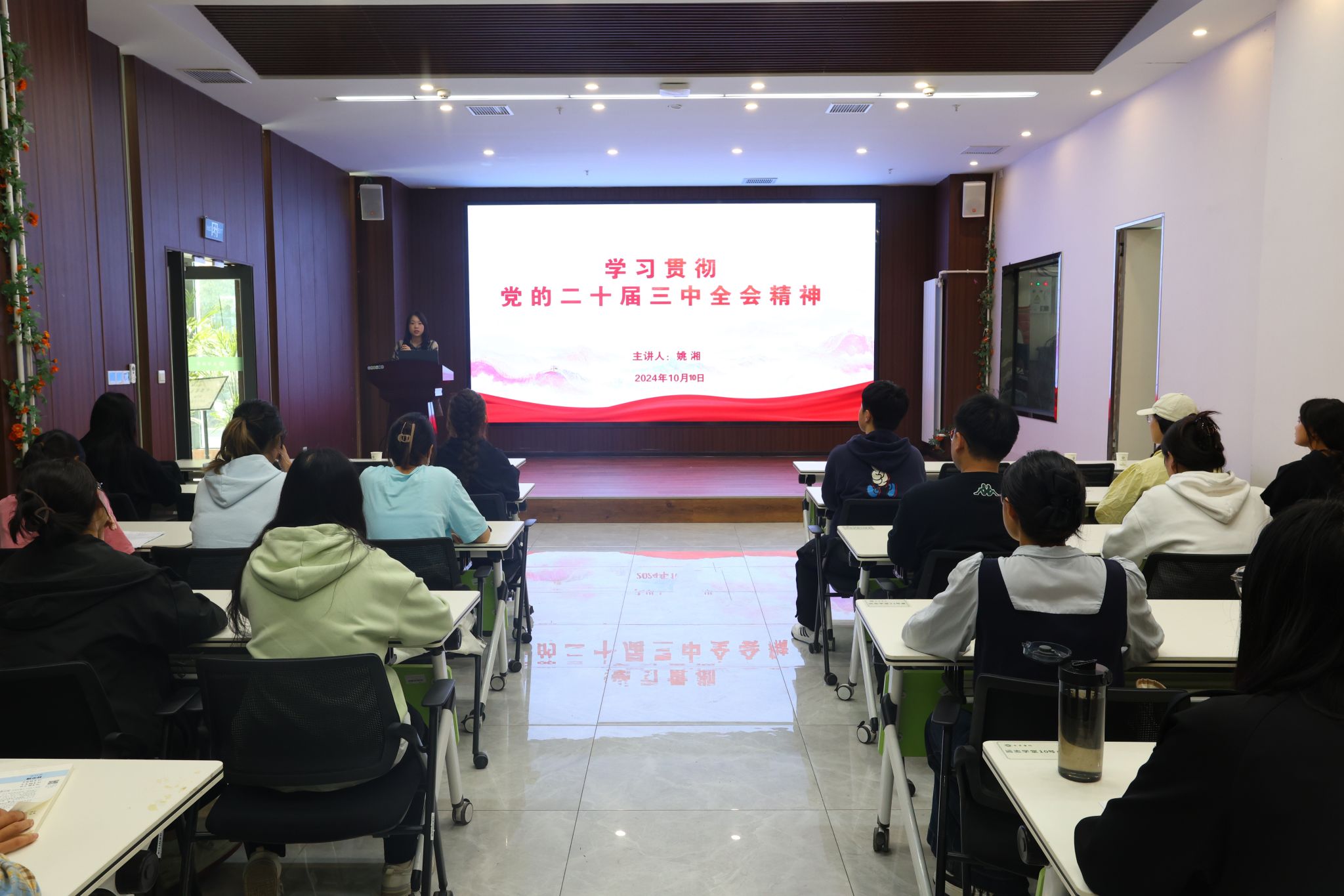 本网讯(文/吴茜 图/万耀威)为深入学习贯彻党的二十届三中全会精神,引导青年师生在学思践悟中感悟新思想、奋进新征程,本草书院于2024年10月10日在远志学堂举办党的二十届三中全会精神专题宣讲活动。河南省青年讲师团宣讲员、本草书院辅导员姚湘作宣讲报告,书院师生代表参加。