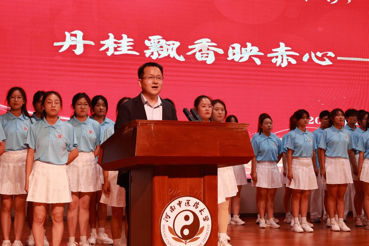 外语学院汉语国际教育专业负责人、学科主任孙俊芳老师作为教师代表发言。她鼓励新生树立远大理想,努力成为中华民族伟大复兴事业的建设者和贡献者。家长代表李梅在发言中勉励大家要坚持梦想,敢于挑战,并为新生送上了真挚的祝福和殷切的期望。优秀校友代表、中共中央党校博士叶平原回顾了在河中医求学的幸福时光,并分享了自己的求学经历和感悟。新生代表翟依坤同学对老师们的无私奉献与陪伴表示了感谢,表达了作为一名新尚真人的自豪。