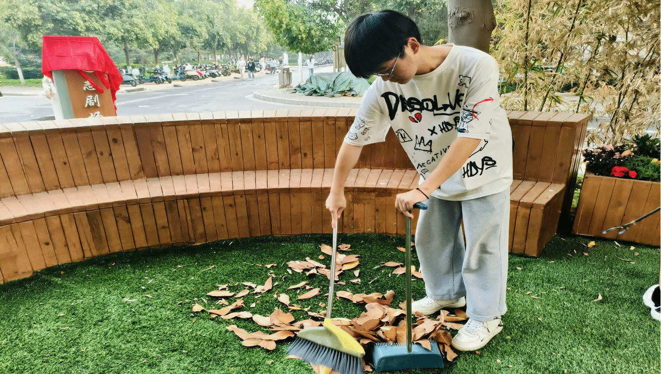 揭幕仪式结束后,社管会组织同学们对远志剧场和书院其他公共空间进行了劳动教育实践体验活动,在工作人员的安排及同学们的配合下,劳动打扫有条不紊地进行,社区面貌焕然一新。