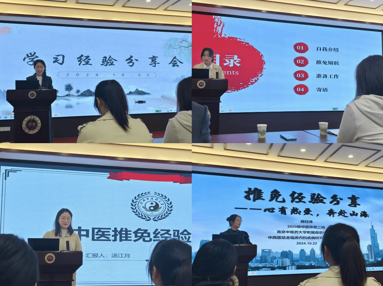 本网讯(文/武雪凡 图/张祎婧)为加强学风建设,引导学生树立正确的学习态度,明确学习目标,充分发挥“朋辈教育”的榜样力量,2024年10月22日,仲景学院(中医学院)、仲景书院于12号楼仲景学堂组织开展推免生经验交流会,2020级学生严万想、张元、汤江月、聂钰博进行了经验分享,学院近百名学生参加。