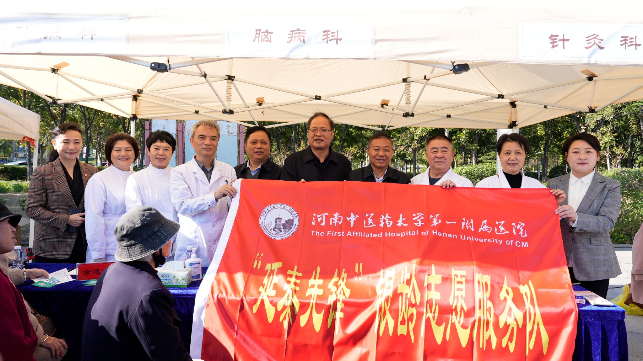 成立当天银龄志愿服务队便随“延泰先锋”总队参加了“健康中原行 大医献爱心”文明实践志愿服务专项行动暨“弘扬中医药文化”主题活动。河南省卫生健康委二级巡视员郭茂华为服务队授旗,并对银龄志愿服务队成立表示祝贺。河南省政府驻京办二级巡视员、社会工作服务处处长常顺楼,河南省卫健委宣传处处长赵圣先等领导对参与活动的离退专家赵俐黎、李连章、余建中、胡小芳等所展现出的志愿精神予以赞扬和高度评价。