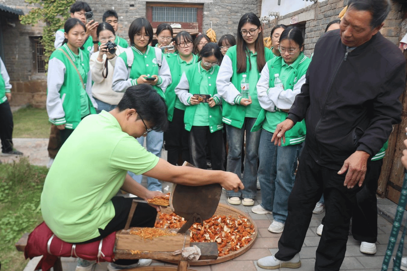 本网讯(文/张嘉成 图/郑玉洁)为深入贯彻党的教育方针,落实立德树人根本任务,本草书院积极拓展第二课堂育人体系,着力涵养独特的中医药劳育文化。2024年10月27日,本草书院副院长兼药学院副院长高巍,药学院中药资源与鉴定学科教师兰金旭,本草书院育人导师胡春月、段懿哲及40余名学生代表,前往禹州怀帮会馆和归园田居九蒸九晒制坊,开展一场以“丝缕药香传古韵,莘莘本草寻非遗”为主题的专业劳育实践活动。