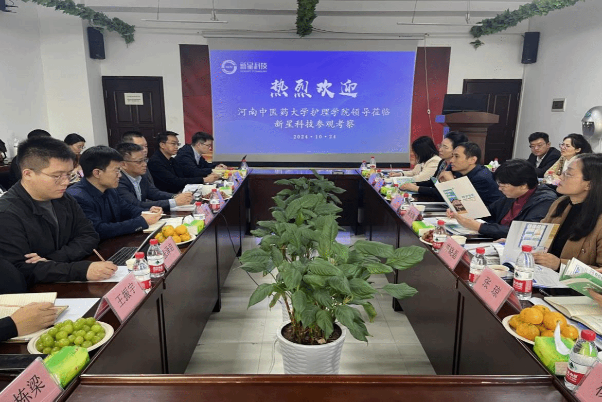 本网讯(文/图 何雯青)为促进智慧康养护理行业学院建设,推动智慧养老项目走深走实,深化校企交流与合作,2024年10月24日,护理学院(智慧康养护理行业学院)党委书记牛乐、院长秦元梅、副院长刘晓辉、学院教学办工作人员及教师代表一行赴河南省新星科技有限公司进行参观考察。