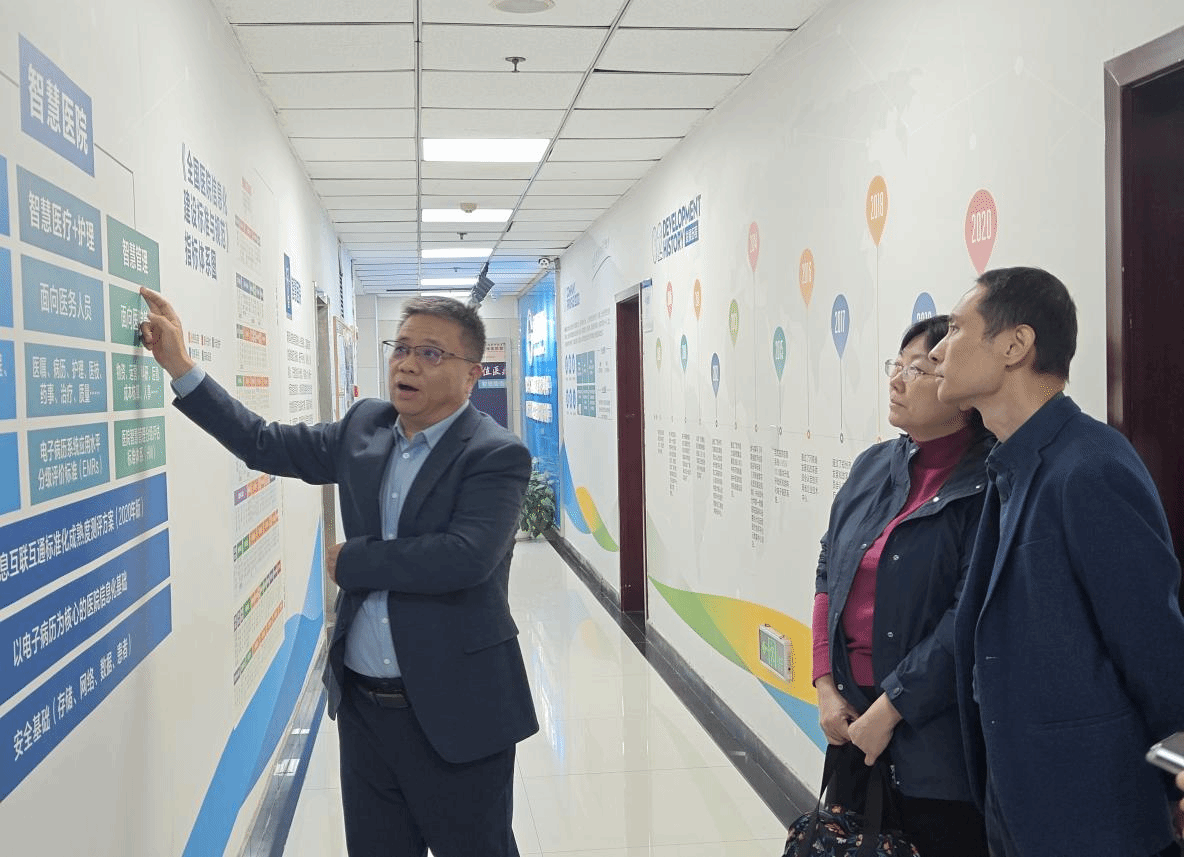 和景林介绍了公司企业文化、发展历程和业务范围,分享了公司在智慧医院、集团化医院、县域医共体、紧密型医联体业务体系,以及在智慧医疗、智慧护理、智慧管理、智慧服务平台建设方面取得的成果,并与参与活动的学院领导、教师就河南省智慧康养工程技术研究中心的申报工作进行了深入交流。随后学院一行参观了公司数控中心,体验了医疗信息化建设。