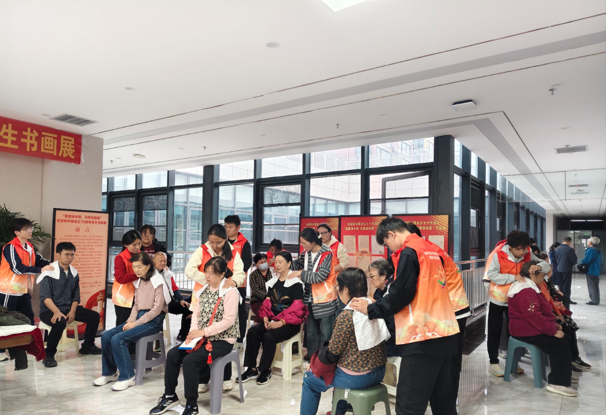 讲座结束后,针灸推拿学院“阳光青年志愿者协会”的同学们为老师们进行了推拿。