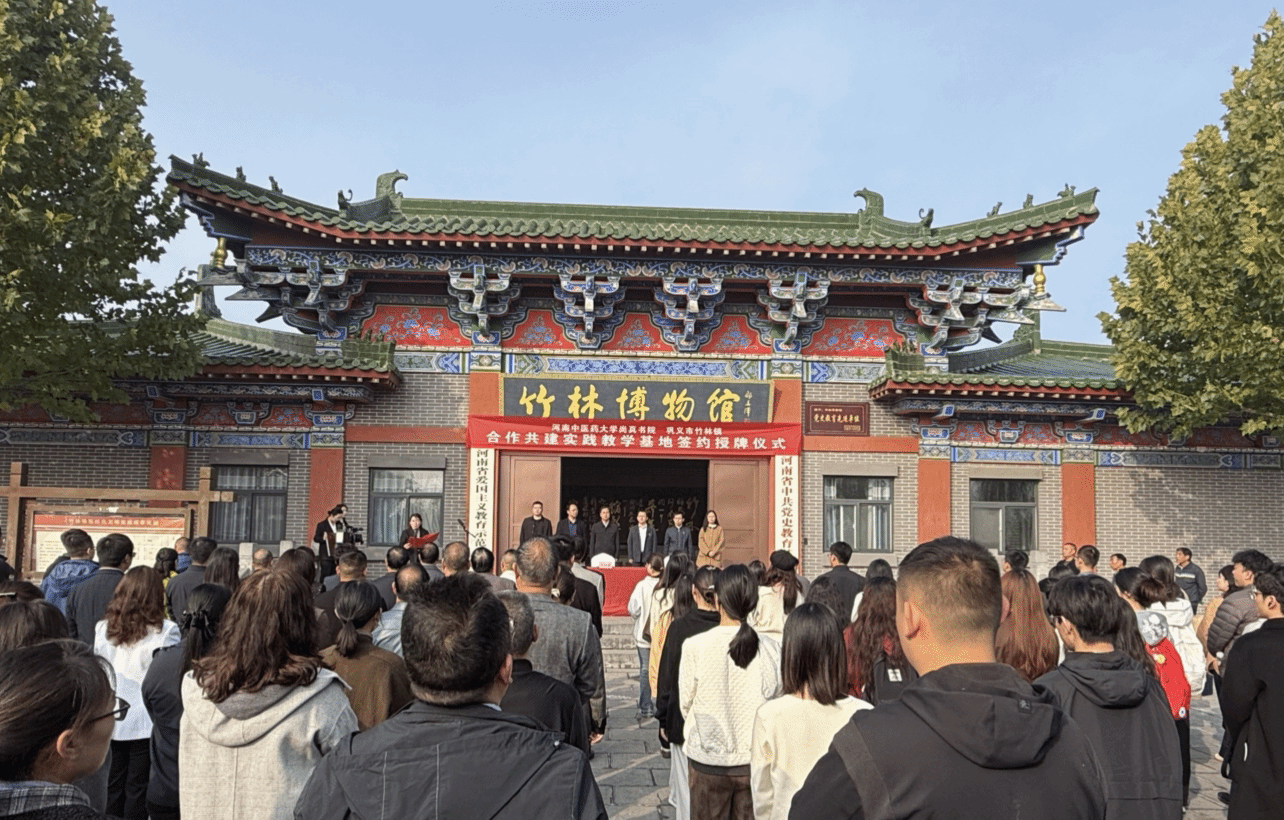 本网讯(文/谢志豪 黄宁宇 图/李婉晴)为推动尚真书院思想政治教育高质量发展,纵深推进实践教学建设,2024年11月1日,书院领导班子、全体育人导师和学生代表前往巩义市竹林镇举行leyu·乐鱼(中国)体育官方网站尚真书院实践教学基地共建签约授牌仪式暨“赓续红色血脉,厚植家国情怀”党旗引领工程启动仪式。尚真书院党委书记、执行院长李志轩,副院长常征辉、万谦,竹林镇镇长赵光辉、党委副书记张东杰等出席此次仪式,仪式由竹林镇纪委书记李米莎主持。