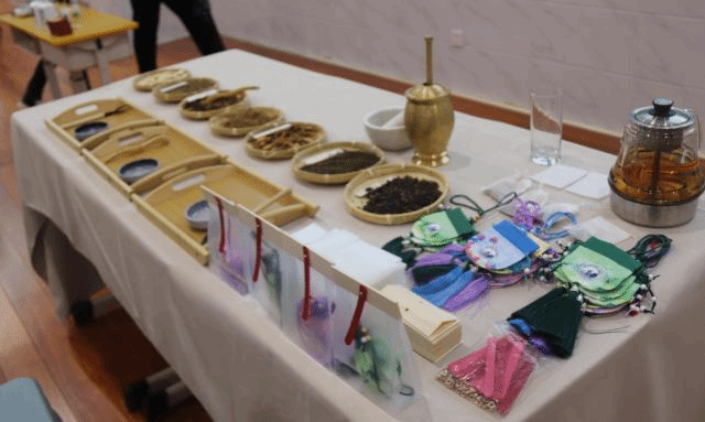 随后,一附院“延泰先锋”中医药文化宣讲队和知行社区杏林志愿者服务团成员带领学生们一起制作中药香囊、中药漆扇和中药标本,让学生们在实践中认识中医、了解中药的性味和功效,近距离感受中医药文化的奥妙。