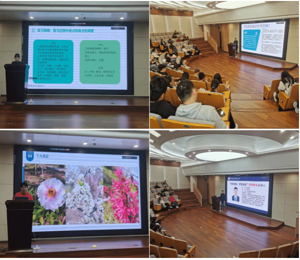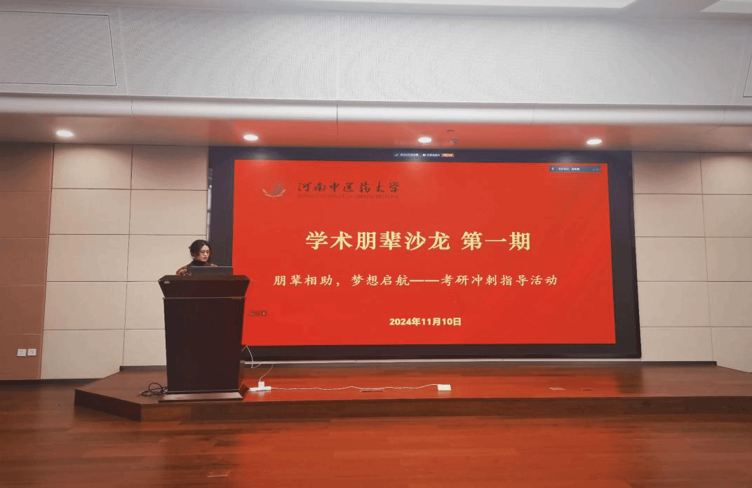 学术朋辈导师团指导老师王鸿飞首先介绍了本次活动的宗旨,强调了朋辈相互帮助的重要性,鼓励大家用坚定的信心和科学的方法面对考研的挑战。活动中,5位学术朋辈导师分别就“政治英语、中医综合、西医综合、中药综合、药学综合”六大科目展开了经验分享。王晓戈从英语、政治公共课出发,介绍了提升学习效率的独到方法,帮助同学们减少复习盲点,优化考试策略;王梦迪从“复习策略、模拟考试、心态调整、考前准备和总结”五个部分分享了关于中综冲刺学习计划的调整与规划,旨在帮助学生在考试前通过策略性的复习方法提高学习效率,保持最佳学习状态;庞奉爽通过穿插视频以及与现场同学互动等形式分享了有关西医综合的复习备考策略及心态调整,他重点强调面对最后冲刺过程中的压力和诱惑,通过运动、正向思考等方法释放压力、缓解焦虑;王延栋分享了中药学综合的考研经验,他从具体科目备考经验、注重专业能力提升和个人心得体会三个方面向同学们分享了考研冲刺阶段可能存在的问题以及应对策略,用自己考研过程中的真实感想和遇到的困惑,为同学们答疑解惑;李堂帅以“研途有伴,心无迷茫”为主题,围绕着考研备考过程的个人经验、如何进行考研过程中的心理建设、上考场前准备的考试技巧等方面展开介绍,以供同学们参考借鉴,顺利的完成考研之路。