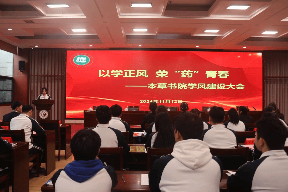 加强学风教育,营造良好氛围。本草书院出台《以学正风 荣“药”青春——学风建设倡议书》,学生干部和学生党员充分发挥示范引领作用。召开学风建设主题班会、学风建设大会,引导同学们聚焦学习这一主责主业。辅导员通过定期进班查课听课,及时针对课堂问题与任课老师反馈沟通,促进良好班风营造。