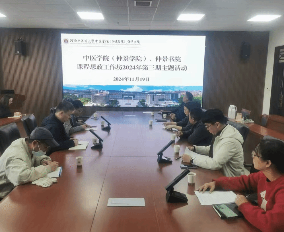 本网讯(文/张培旭 图/郭丽丽)为深入贯彻高校立德树人根本任务,持续推进课程思政建设,中医学院(仲景学院)于2024年11月19日在综合教学实验楼A332会议室举办了本年度第三期课程思政工作坊活动。副院长刘文礼、通识课课程负责人及教师代表参加了本次活动。活动由教学办主任史占江主持。