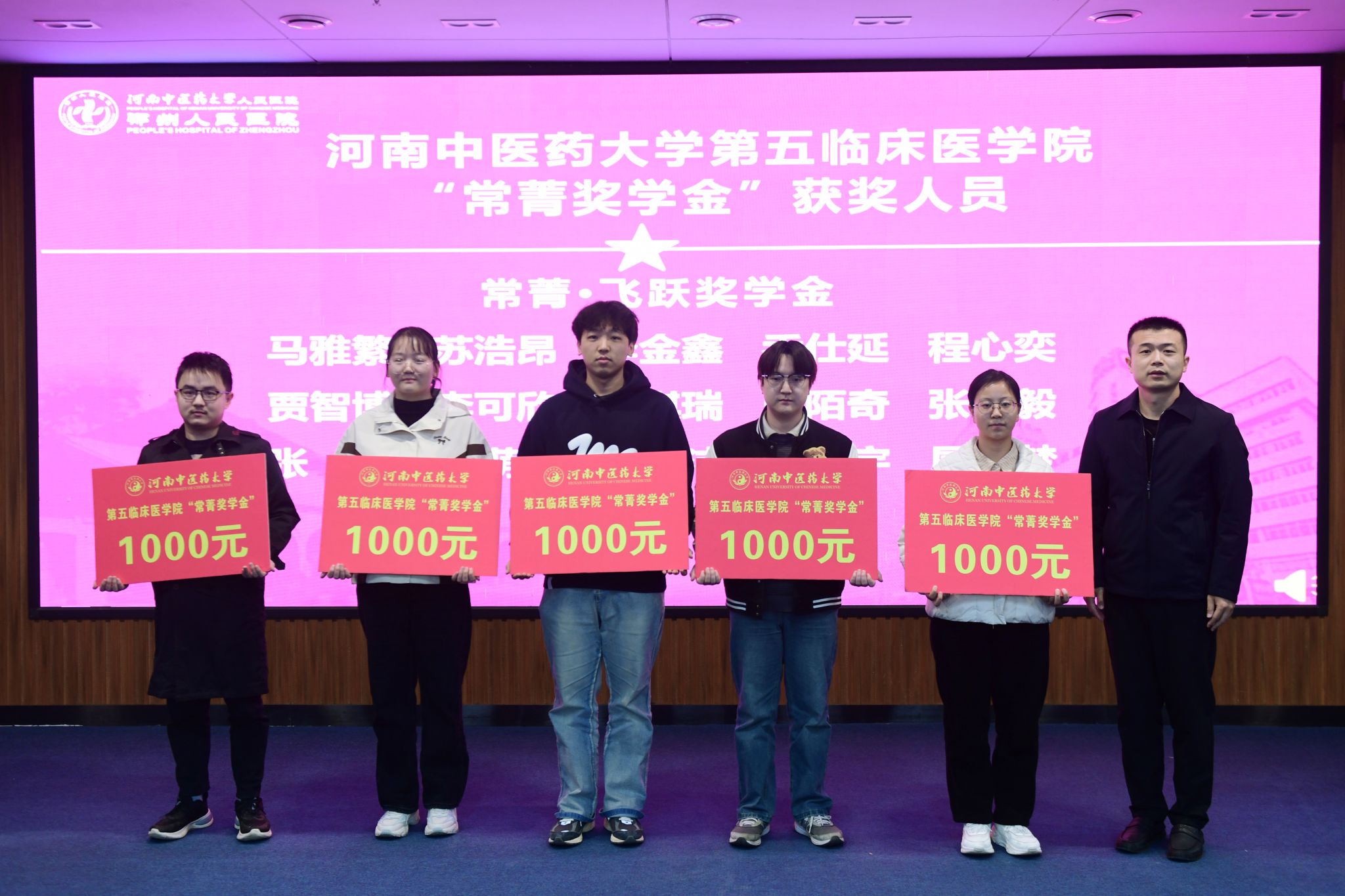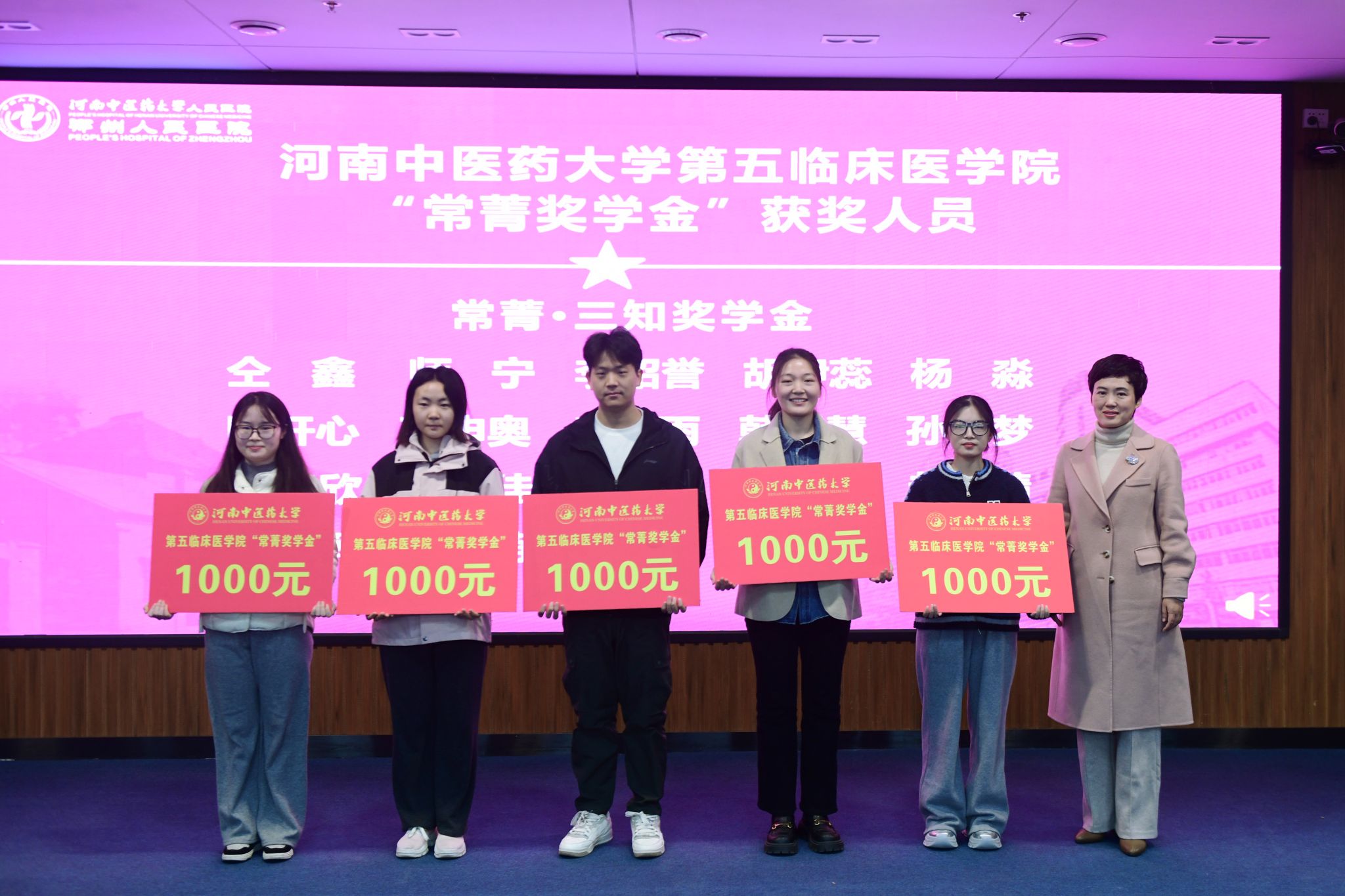 郑州市大肠肛门病医院副院长宋聚才为常菁奖学金获得者颁奖
