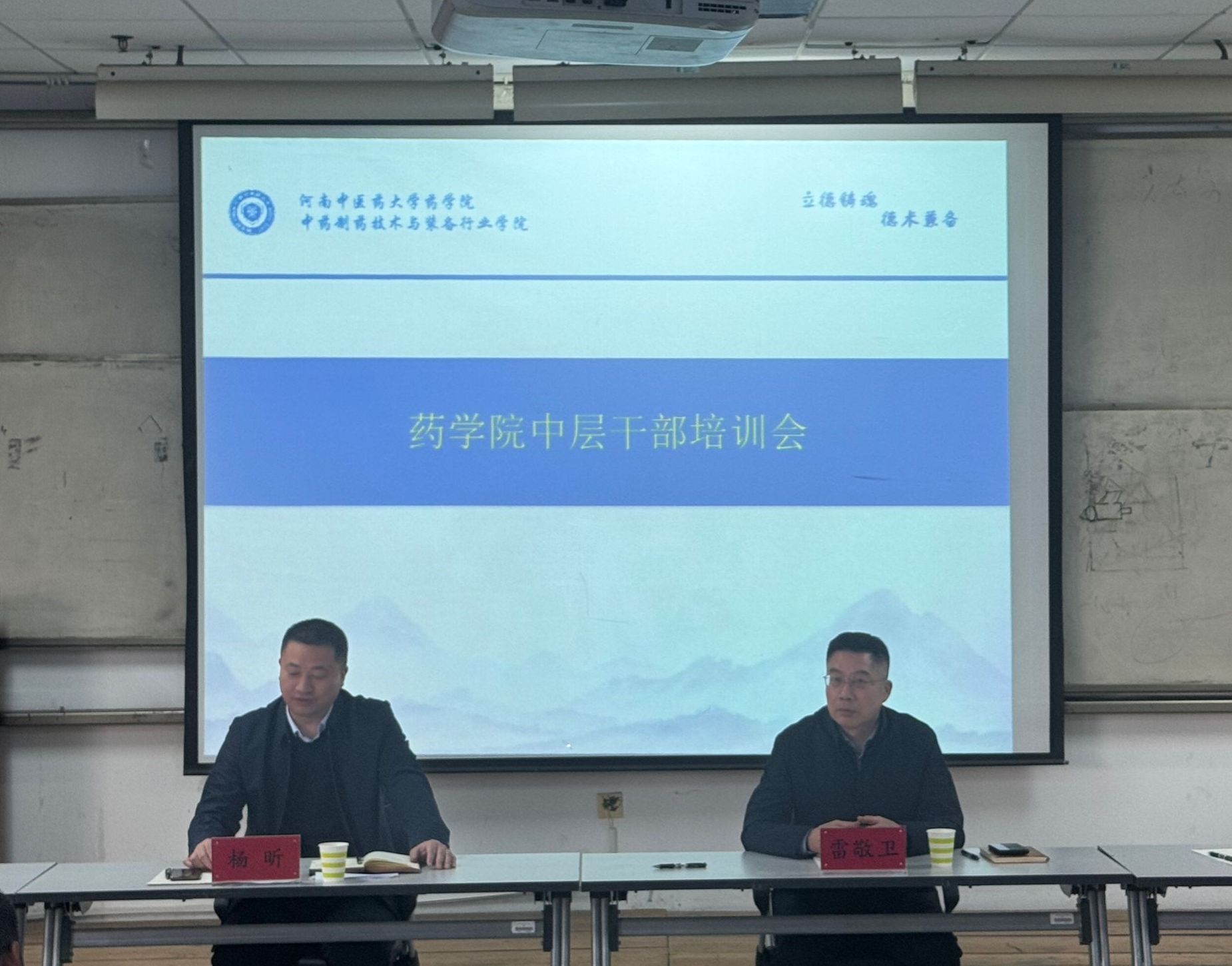 杨昕以“服务大局定好位 履职尽责谱新篇”为题对学院中层干部进行了培训,并针对提升中层干部的履职能力提出了明确要求。加强理论修养,坚定正确理想信念。要进一步强化理论武装,坚持不懈用习近平新时代中国特色社会主义思想凝心铸魂;加强党纪党规的学习,做到警钟长鸣,勤政廉政;发挥基层党组织的战斗堡垒作用和党员先锋模范作用把党员干部的思想和行动统一到学习贯彻党的二十届三中全会精神上来;二是尽快转换角色,适应新的工作岗位需要立足岗位职责,不断完善自己;牢记宗旨树立公仆意识,为师生服好务;要真抓实干,尽职尽责,发挥表率和带头作用聚焦青年教师发展,为药学院持续高质量发展培养后备力量。三是提升履职能力,增强干事创业的本领。要提高宏观思维能力,站在中医药传承创新发展这个大局上思考问题,谋划工作。提高组织协调能力、处理复杂问题的能力,做到团结合作、科学和民主决策;提高开拓创新能力,做到在思想上有新解放,工作上有新举措;提高应急反应能力,保障师生生命财产安全;提高群众工作能力,切实为群众办实事、解难题。四是要加强作风修养,弘扬优良传统作风。要常怀敬畏之心,保持廉洁自律的本色;严守思想、道德和法纪防线,做到自身净、自身正、自身硬;守纪律、讲规矩,高标准做事、严要求做人;常态化自我警醒,做到知敬畏、存戒惧、守底线;自觉加强党性修养,培养健康兴趣爱好。五是要增强争先意识,争做优秀领导干部做勤政廉政的表率;做爱岗敬业的表率;做科学发展的表率;要做勇争一流的表率。