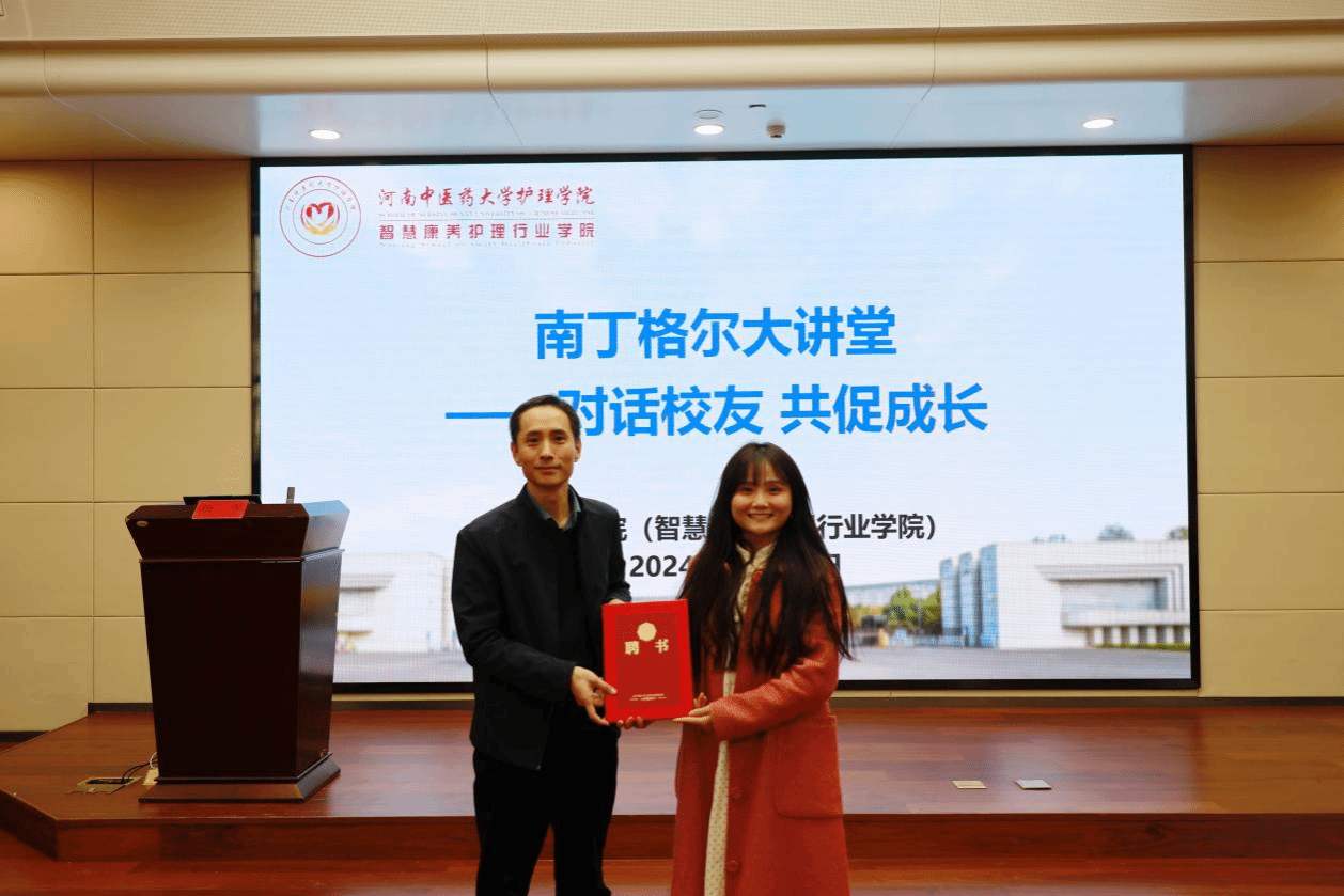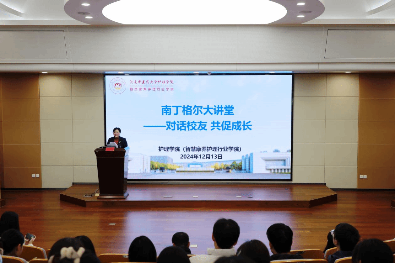 本网讯(文/赵静雯 王衍淇 图/闫睿涵)为进一步弘扬南丁格尔精神,强化护理学子的思想价值引领,充分发挥优秀校友的榜样示范作用,助力学生成长成才,2024年12月13日,护理学院(智慧康养护理行业学院)南丁格尔实验班在俊学楼A114报告厅举办了“南丁格尔大讲堂——对话校友,共促成长”活动。本次活动邀请了学院2015级优秀校友、中山大学附属第三医院团委副书记朱海秀与在校师生分享她的成长故事和优秀事迹。学院领导班子成员、教师代表,第八期、第九期“南丁格尔”实验班学员及学生代表等150余人参加了此次活动。活动由学院党委副书记杨雪主持。
