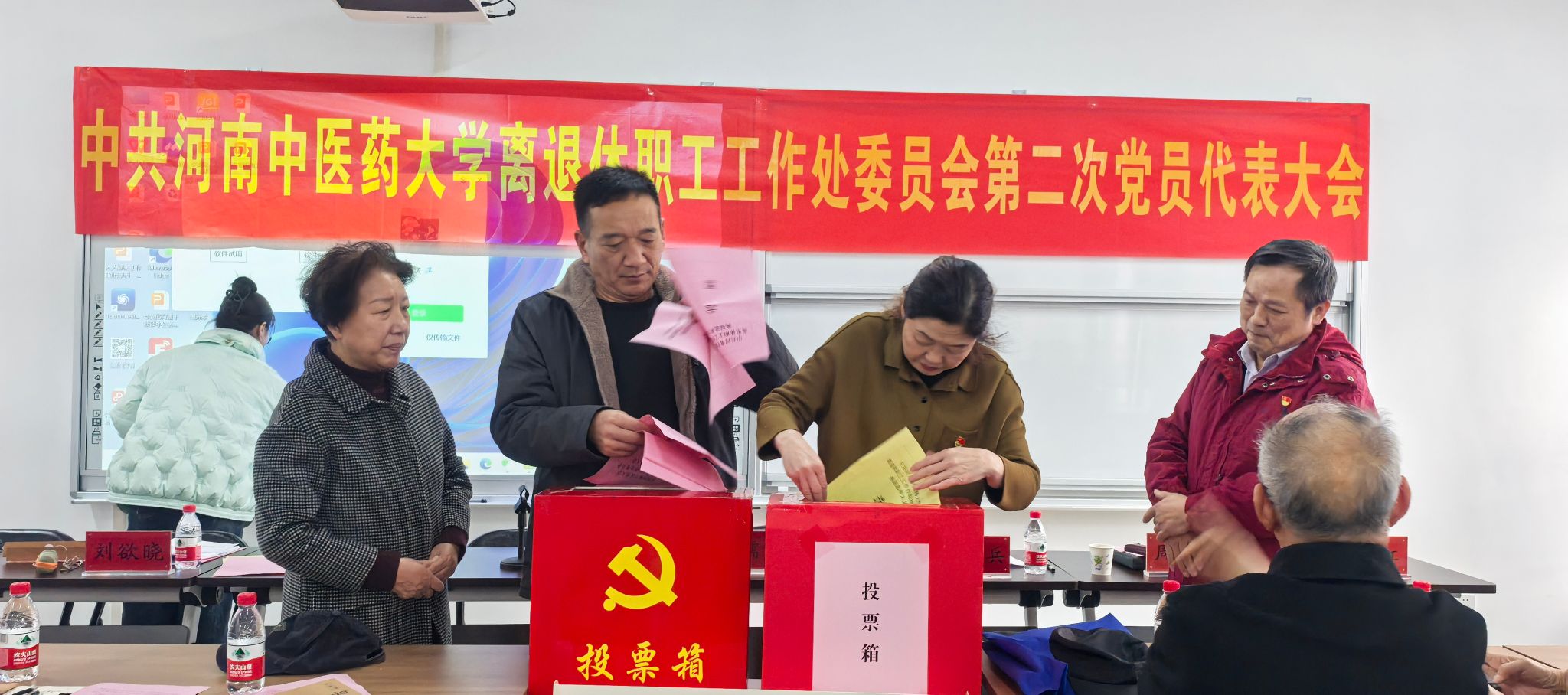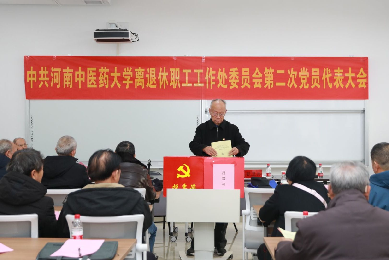 大会以无记名投票方式,选举产生了离退休职工工作处新一届委员会和第一届纪律检查委员会,7位同志当选第二届委员会委员、3位同志当选第一届纪律检查委员会委员。此次换届工作得到了离退休职工工作处各党支部的大力支持,退休党员代表积极参会,其中不乏有88岁高龄的离休党员代表,他们克服困难,来到大会现场认真履行代表职责,充分展现了离退休老同志对党的事业的强烈责任感和对学校的深厚感情。