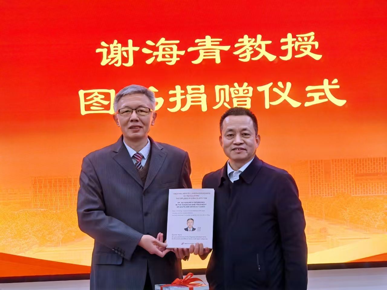 捐赠仪式上,谢海青回忆了自己在母校的求学经历及跟师李振华教授的生活点滴,回思过往犹在昨日,感恩之情溢于言表,感恩母校与恩师正是此次捐赠的缘起。他讲述了《调脾胃治杂病——谢海青急症疑难病诊疗经验专辑》编著的起因与过程,前后历十年的打磨雕琢,是多年临床治疗疑难杂病的经验总结,以希对中医临床诊断治疗有所助益。《调脾胃治杂病——谢海青急症疑难病诊疗经验专辑》分上下篇,上篇重点介绍了作者从医近三十年的医学心悟,在尊东垣“调脾胃治五脏”的基础上,结合前辈大师的指导和自己的临床琢磨,形成的治疗疑难杂症的理论基础。下篇分科别类列举了急症重症、肿瘤、肺系疾病、心脑系疾病、脾胃系等26个大类282个病案,病例全部来源于谢海青临床一线,对医疗实践具有较好的借鉴和参考价值。