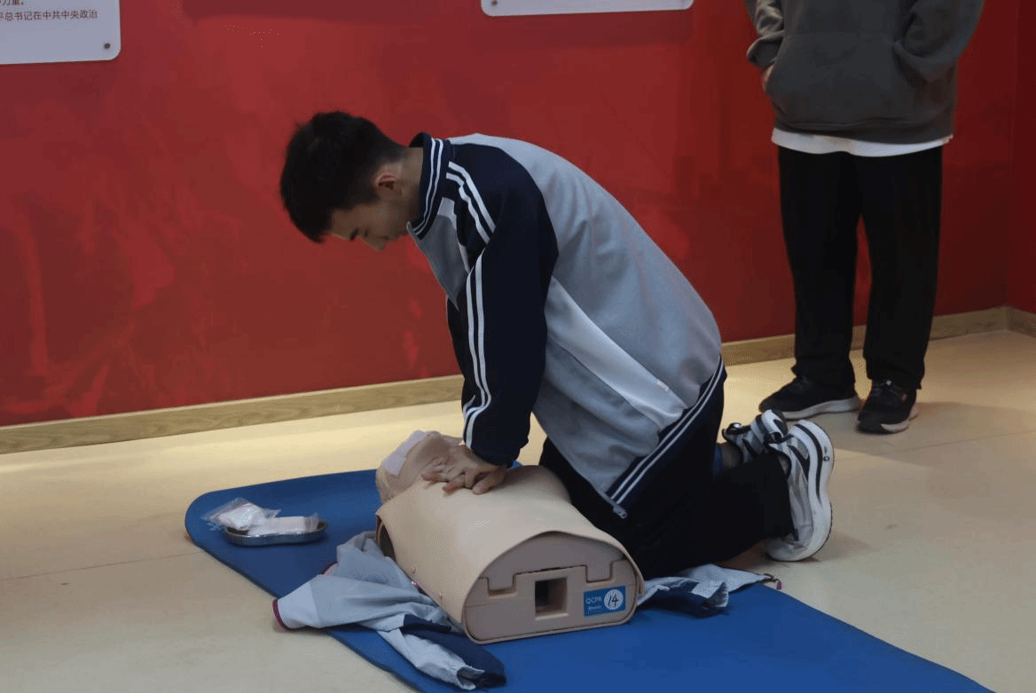 活动共设置安全急救培训、消防安全知识宣讲、消防疏散逃生演练、消防器材实操四个部分。最先开始的急救培训在仲景社区活动室拉开帷幕,学校护理学院牛鹏老师详细讲解了细介绍了心肺复苏、海姆立克急救法、AED的使用等急救知识和技能。同时,培训还采用情景模拟、实操演练等教学方式,让同学们实际操作,确保大家能够在真实场景中迅速、准确地应用所学技能;随后在仲景学堂,河南省应急救援协会安全专业委员会教员于欢波老师结合典型案例、图片和视频资料,深入浅出地讲解了预防火灾和消防安全等各项知识,全面介绍了火灾成因、应对措施、初期火灾的扑救方法以及火场逃生技巧等,并对常见消防器材的正确使用步骤做了细致的讲解和演示;消防疏散演练在仲景社区楼道内有序开展,同学们闻令而动,按照预先制定的应急疏散预案,迅速沿着安全通道指示标识排成一字队形、低头弯腰姿势安全撤离宿舍楼;最后,消防器材实操在学校保卫科老师的指导下进行,参训人员逐一进行灭火器实操,确保每一名参训人员能够熟练掌握灭火器材的使用方法及灭火技巧。