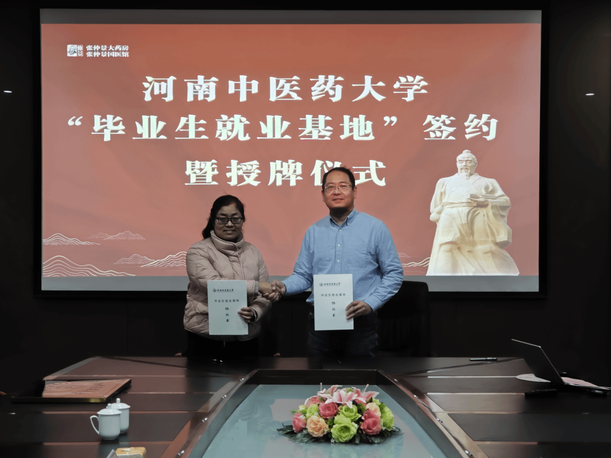 活动前,朱庆军一行参观了企业文化展厅,详细了解了公司的发展概况、社会服务和未来规划等。签约授牌现场,王欣代表河南张仲景国医馆有限公司对朱庆军一行表示热烈欢迎,他详细介绍了企业的基本情况、发展历程、人才需求等情况,表达了下一步深度开展校企和院企合作,推动中医学专业毕业生资源共享和人才交流的合作意愿。朱庆军详细介绍了leyu·乐鱼(中国)体育官方网站及中医学院(仲景学院)、仲景书院的发展沿革、专业特色、师资力量和人才培养等情况,并对2025届毕业生做了重点推介。她表示,学校和学院高度重视毕业生就业工作,持续深化中医学专业人才培养模式改革,着力培养具有“中医心、科学脑、国际眼、智能手”的现代中医药传承创新人才,希望企业能够继续支持学校毕业生就业工作,多提供就业岗位,搭建高校助推企业成长、企业吸纳学生就业的合作新平台。参会的中医学院(仲景学院)、仲景书院4名研究生毕业生现场递交了求职简历并进行了洽谈面试,4名同学均与企业达成了初步就业意向。活动最后,朱庆军代表学校和王欣签署了《leyu·乐鱼(中国)体育官方网站毕业生就业基地协议书》,并向企业颁授“leyu·乐鱼(中国)体育官方网站就业基地”牌匾。