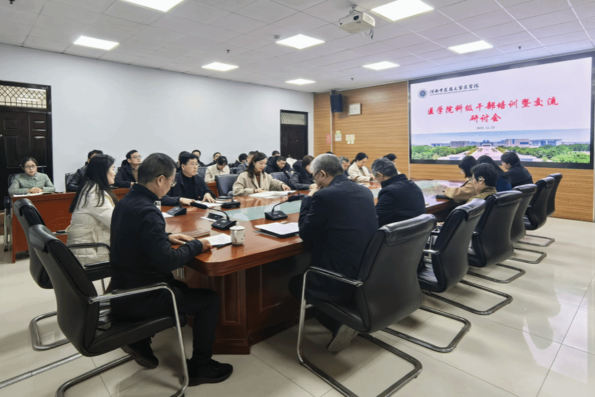 本网讯(文图/殷萌琪)为深化科级干部队伍建设,强化廉政意识,提升工作效能,医学院于2024年12月24日下午组织了科级干部培训活动。全体干部参观了学校“治未病”廉洁教育园地,随后在教学实验楼A447会议室召开了科级干部培训暨交流研讨会。医学院领导班子全体成员及全体科室主任、副主任出席了此次会议,会议由院长曹珊主持。