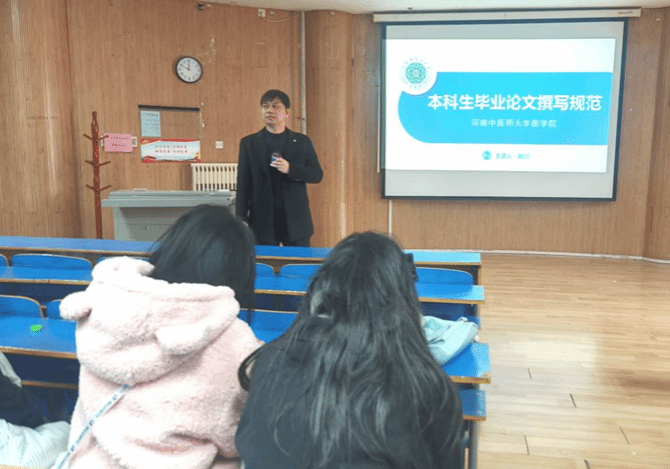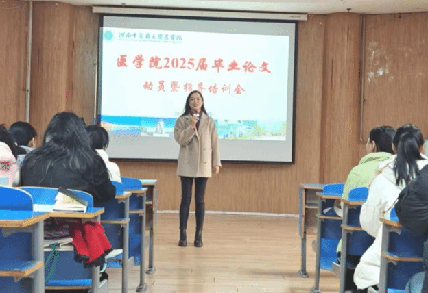 启动会后,预防教研室副主任赵川、黄艳梅博士开展专题培训。赵川针对毕业论文写作规范与要求,详细阐释了论文结构、内容撰写及格式编排等方面的要点;黄艳梅围绕文献检索技巧以及毕业论文选题注意事项,传授了高效检索文献的方法,并结合实例剖析了选题的关键要素,助力学生提升论文写作能力。