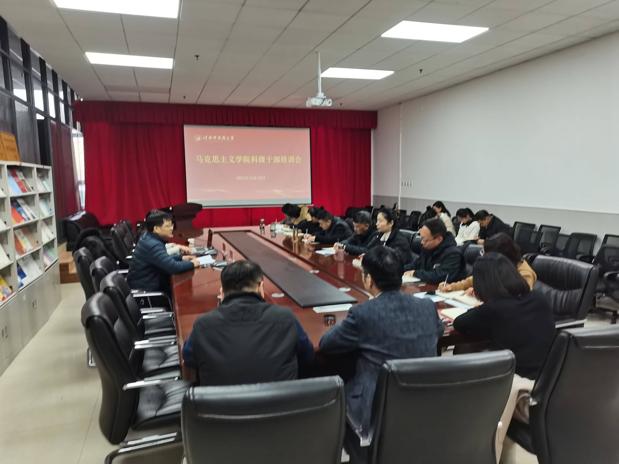 本网讯(文/图 张加刚)为深入学习贯彻习近平新时代中国特色社会主义思想和党的二十届三中全会精神,根据学校党委组织部有关科级干部培训通知精神,切实加强科级干部队伍建设,马克思主义学院党委于2024年12月11日至12月28日举办新任科级干部系列培训活动。各办公室主任、教研室负责人和党支部书记、组织员参加培训。