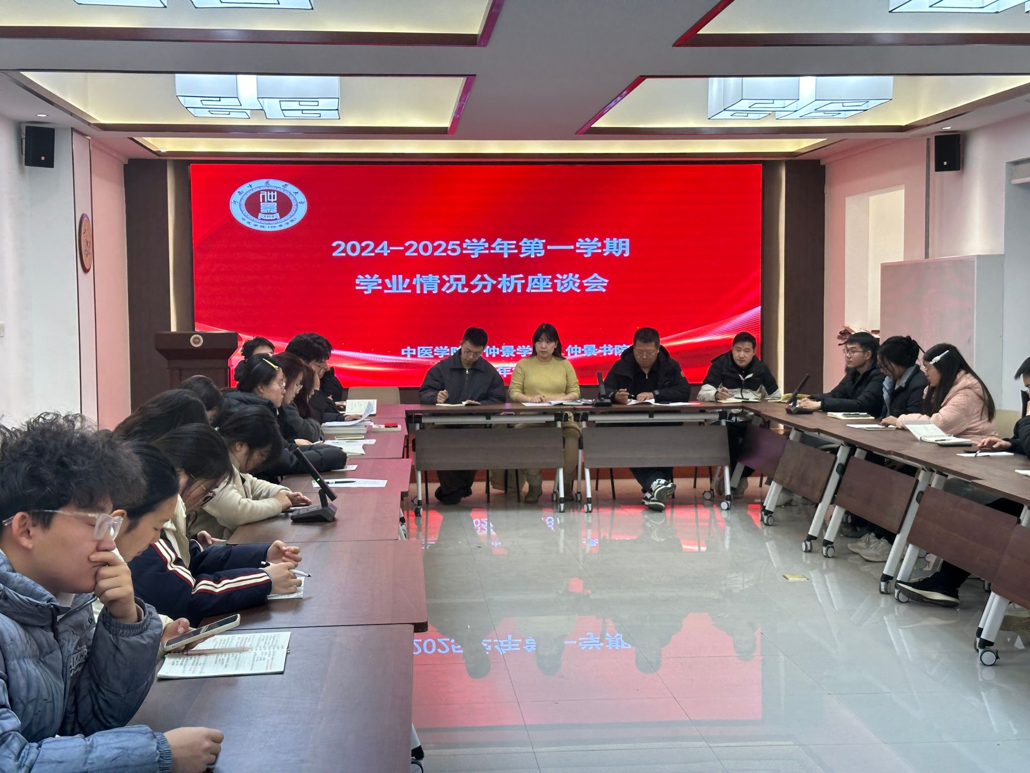 本网讯(文/图 刘淘淘)为进一步加强学院学术学风建设,提升学生学业水平。2025年2月18日,仲景书院在仲景大讲堂举办2024——2025学年第一学期学业情况分析座谈会。此次座谈会由团委书记刘淘淘老师主持,书院全体育人导师、学生会学习部代表、各年级学委、各班学委及学生代表共同参与。