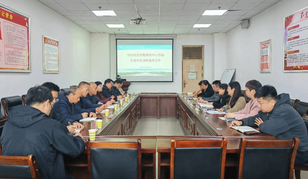 本网讯(文/图 胡志伟) 2025年2月27日,后勤服务中心党委书记唐陆、主任孟肖飞带领班子成员和相关科室负责人赴外语学院开展调研,深入了解学院及教职工后勤保障需求。外语学院领导班子及教师代表参加调研座谈会。会议由院长朱文晓主持。