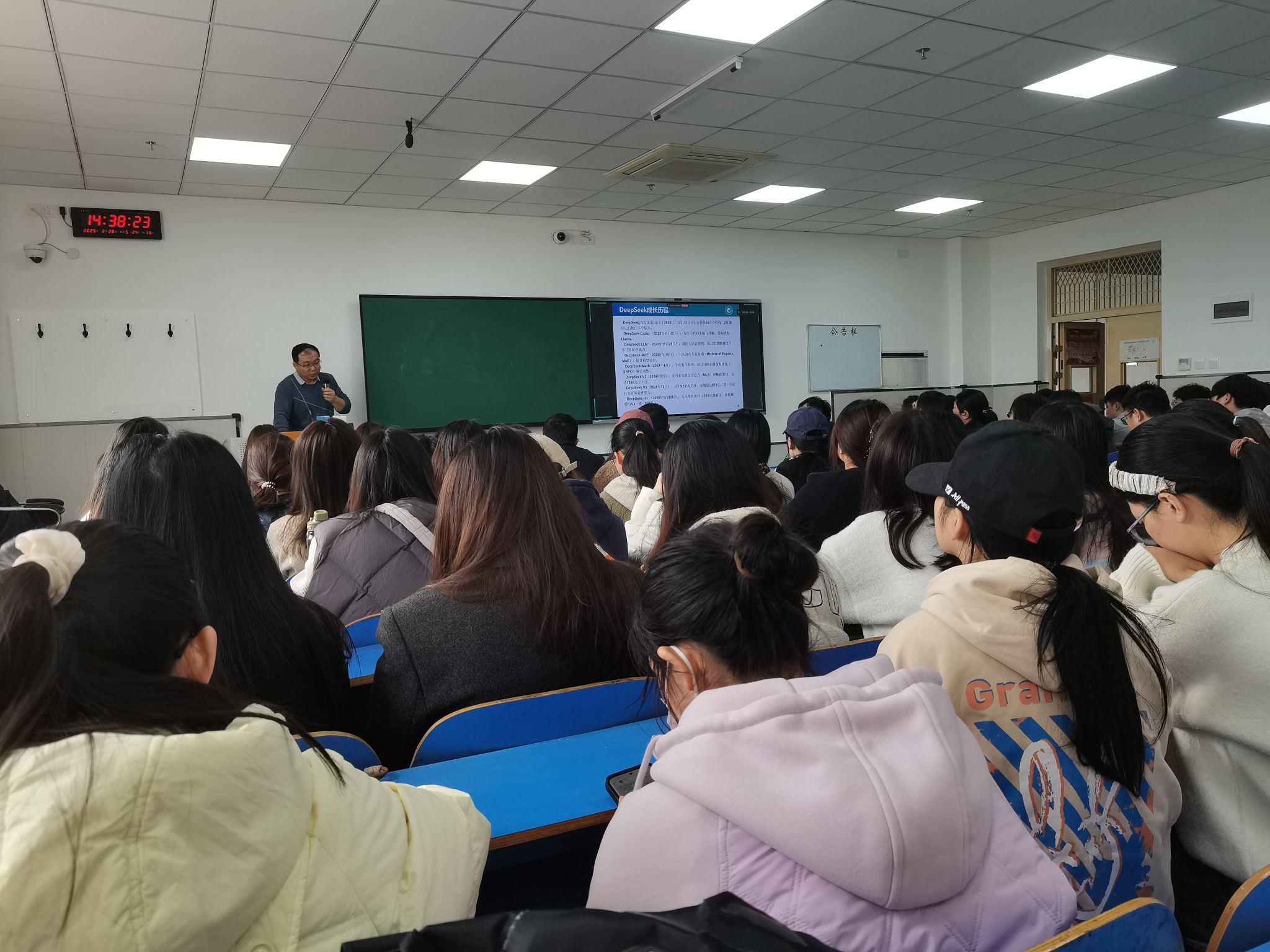 本网讯(文/党豪 图/朱红磊)2025年2月28日,在教学实验大楼A717教室,信息技术学院(智能医疗行业学院)联合校青年科学家协会交叉学科学部开展了人工智能学术交流活动,信息技术学院宋学坤教授为在场师生做了题为“DeepSeek等AI大模型在学术科研中的应用及学术规范思考”的专题报告。信息技术学院、青年科学家协会教师及第一临床医学院、管理学院研究生、本科生共100余人通过线上线下相结合的方式参加了此次交流。交流会由信息技术学院党委书记许成刚主持。