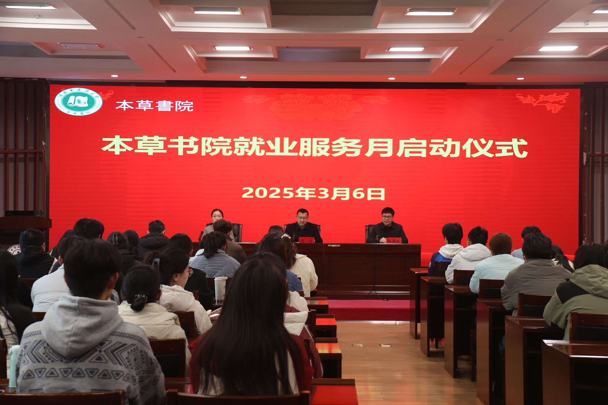 本网讯(文/武永勇 图/胡坤、宋雨蒙)为更好服务学生职业发展需求,助力高质量就业,2025年3月6日,本草书院在图书馆第二报告厅举行就业服务月启动仪式。党委学生工作部、研究生工作部副部长、就业创业指导服务中心(创新创业学院)主任、院长高磊,本草书院党委书记、执行院长刘雅琳,本草书院副院长高巍,各年级辅导员和学生代表共同出席了此次活动。启动仪式由高巍主持。