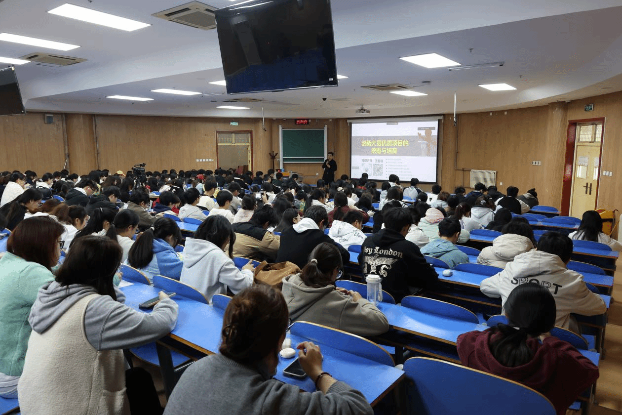 王智晓老师立足多年赛事评审与项目指导经验,从比赛规则、项目选题、商业计划书撰写到路演PPT制作,为在场师生系统梳理了比赛的核心要点,并结合历年国赛金奖案例,强调优质项目需兼具“社会价值、创新逻辑与实践可行性”,针对学生常见误区提出破解思路。现场师生听讲认真投入,反响热烈。