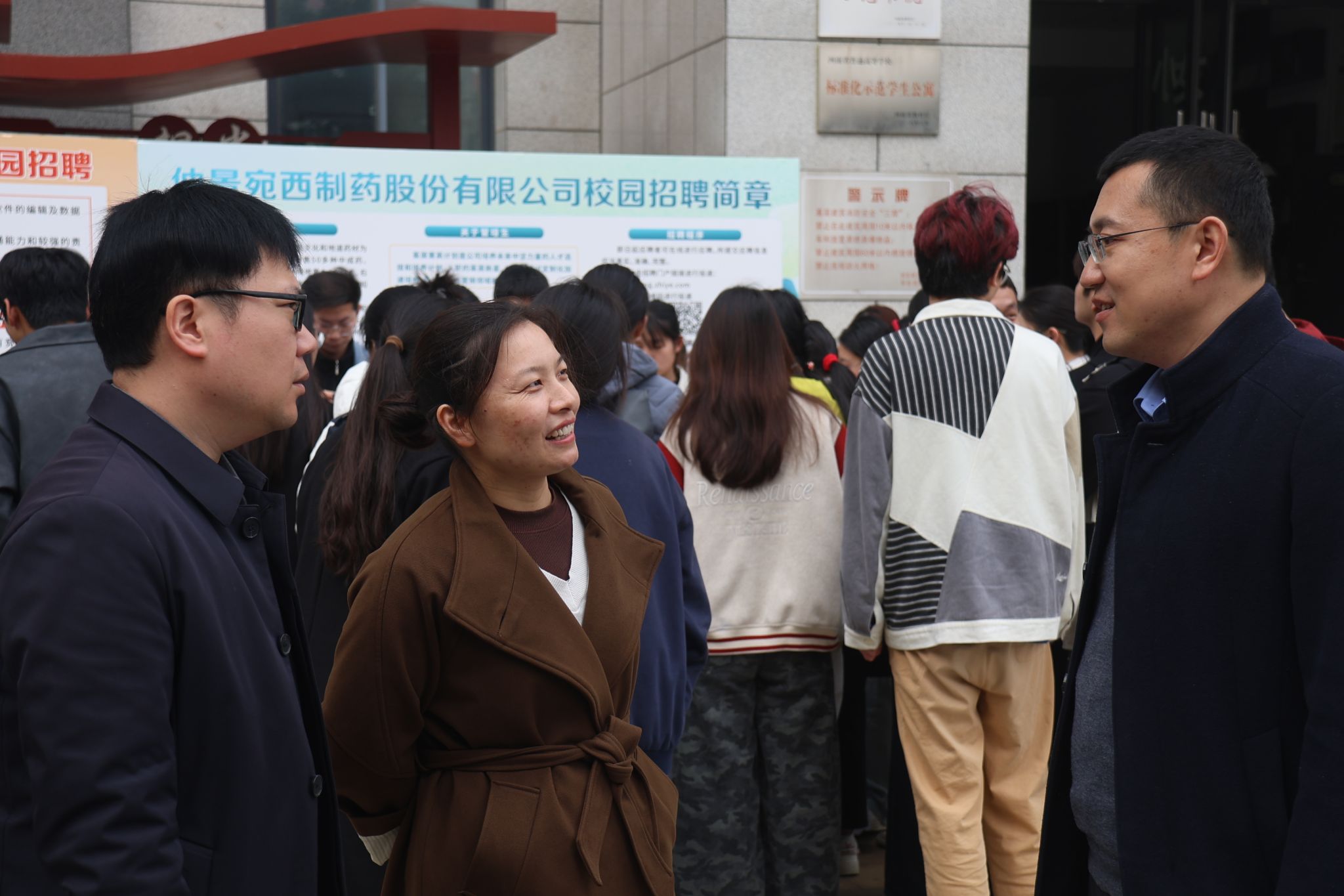 校党委学生工作部、研究生工作部副部长、就业创业指导服务中心(创新创业学院)主任、院长高磊莅临现场,与企业代表深入交流,对企业支持学生就业表示感谢,希望未来能够组织本草书院学子前往企业参观、交流,进一步拓宽就业渠道、深化校企合作。