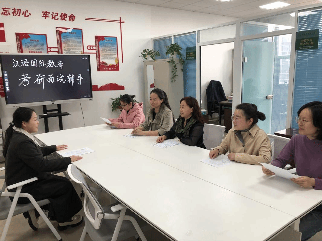 3月11日下午,线下考研模拟面试辅导活动在外语学院党员活动室举行。活动分为英语口语测试、专业课面试、综合面试三个环节。由汉语国际教育教研室的教师们担任模拟面试官,从面试礼仪、语言表达和逻辑思维能力等维度对学生的表现进行细致点评,并给出了针对性的改进建议。通过身临其境地模拟体验,学生们不仅熟悉了考研复试的流程和氛围,掌握了面试技巧,更清晰地认识到存在的问题和改进方向。