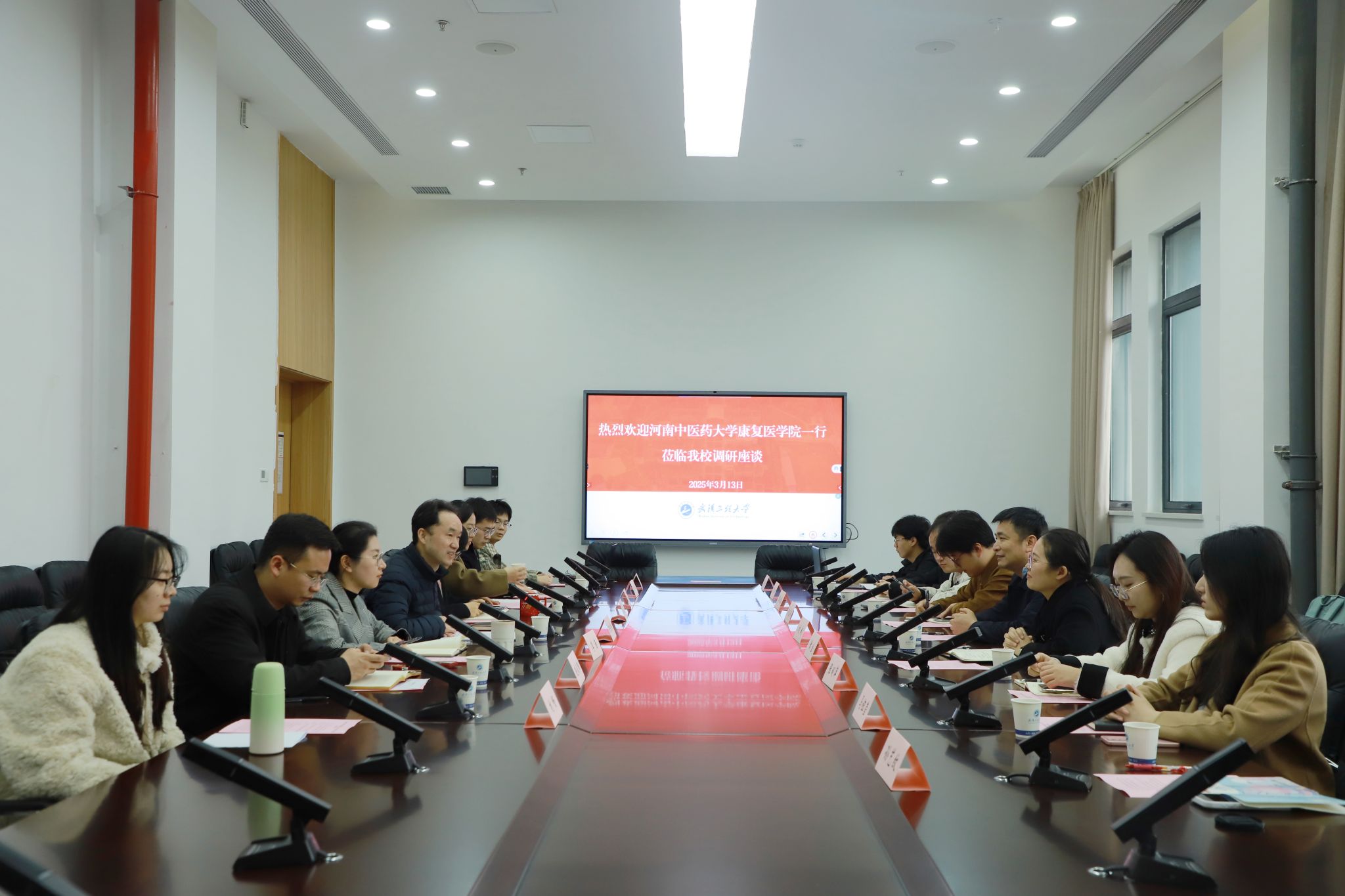 本网讯(文/黄金 图/职永全 梁庆琛)为深入探索研究生教育管理的创新模式,提升研究生培养质量,leyu·乐鱼(中国)体育官方网站康复医学院副院长刘斌率队于3月13日下午3时前往武汉工程大学,就研究生的思想政治教育、日常管理、导师培训及学位过程性管理等方面展开深入探讨与学习交流。