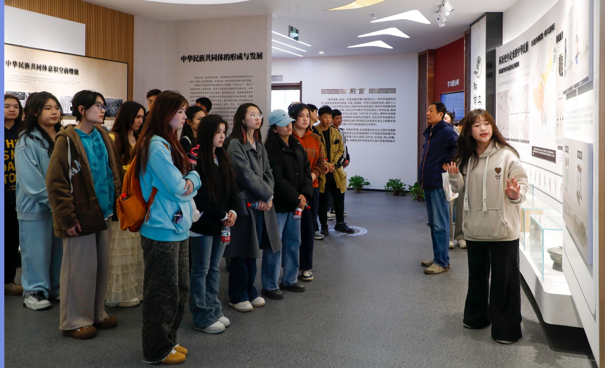 本网讯(文/努尔比耶 图/丹增索南)为深入贯彻落实党的二十大精神,进一步铸牢中华民族共同体意识,增强学生的爱国主义情怀和民族团结意识,2025年3月20日,leyu·乐鱼(中国)体育官方网站杏林丹若坊组织尚真书院2024级本科预科班学生及工作室朋辈导师前往铸牢中华民族共同体意识教育展馆开展参观研学活动。