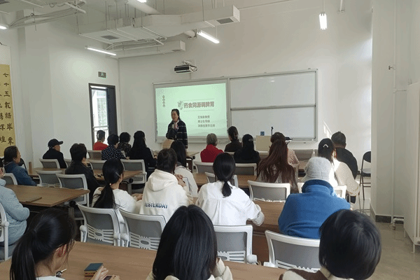 王宪龄深耕药食同源领域多年,讲座中,她以“生姜”这一日常食材为切入点,通过生动的案例与科学解析,揭示常见食物的药用价值与养生功效,现场演示了药膳配伍原则及脾胃调理的食疗方案,深度融合学术性与实用性。王宪龄从“四季调养”“体质辨识”等角度提出养生建议。互动环节中,学生围绕“慢性病食疗”“中药代茶饮”等问题踊跃提问,王宪龄逐一解答,现场气氛热烈。