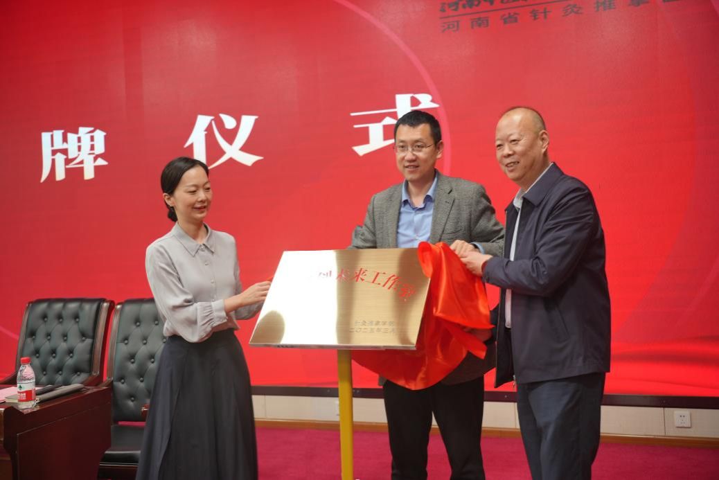 在工作室成立仪式上,葛昕宣读了成立文件。高磊、郭薇、张政共同为"针擎创未来"工作室揭牌。张政在总结讲话中指出,学院始终将学生科研创新工作放在重要位置,同学们要把握机遇,将理论知识与实践操作有机融合,通过参与科创比赛不断提升专业素养。同时,希望工作室成为培养创新人才的重要阵地。