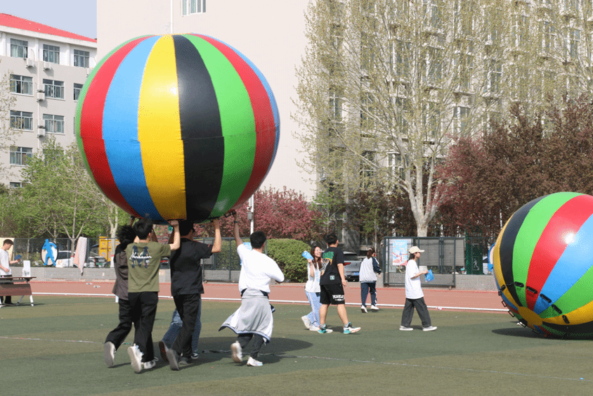本次运动会结合“一站式”学生社区建设要求,以社区体育节的形式展开。赛事方面,设置“两人三足”“六方拉力赛”“旱地龙舟”“运转乾坤球”等11项趣味项目,涵盖协作、竞技与智慧比拼。为突出体育节特色,运动会现场设置“体重管理”主题,引导学生科学健身、管理体重。活动现场氛围热烈,欢声笑语不断。