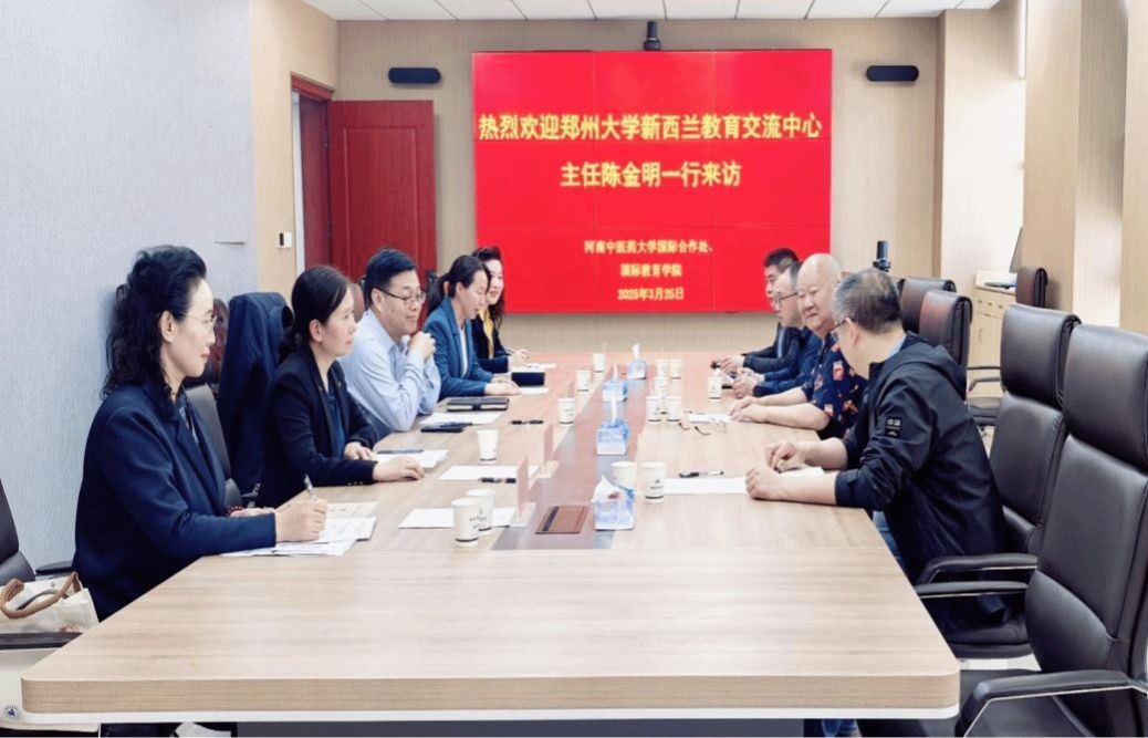 本网讯(文/图 江源)为深入贯彻落实新时代教育对外开放战略,推进中医药文化国际化发展,2025年3月25日,国际合作处与郑州大学新西兰教育交流中心举办合作会谈。郑州大学新西兰教育交流中心主任陈金明、主任助理陈晰偌、中心郑州后勤经理李乾坤,河南省外侨中心国际部部长孙飞、leyu·乐鱼(中国)体育官方网站国际合作处处长朱剑飞、副处长李晓坤、护理学院副院长刘晓辉等相关人员出席会谈。会议由国际合作处副处长孔沈燕主持。