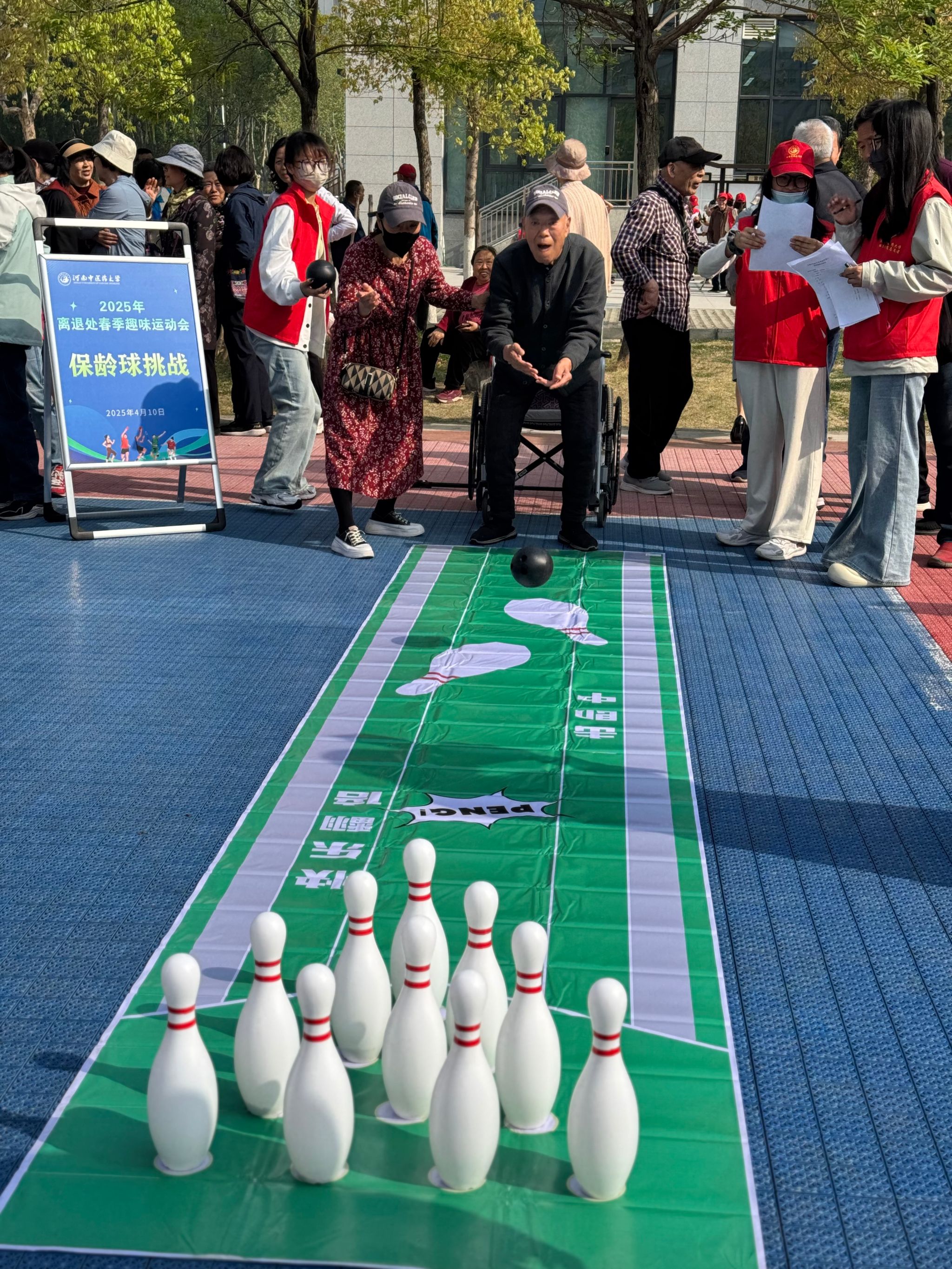 本次运动会充分考虑老年群体特点,科学设置“篮球投篮、趣味投毽子、保龄球挑战、实心球掷准”四大项目,兼顾竞技性与趣味性。离退处全体工作人员齐上阵团结协作,精准参与服务保障。体育学院30余名学生志愿者在裁判长田贺宇的带领下,8组项目依次开赛。赛场上,老同志们精神矍铄、各展所长:篮球投篮区,选手屏息凝神,精准命中篮筐;五彩毽子在空中划出优美弧线,引发阵阵喝彩;保龄球撞击瞬间的清脆声响与欢呼声交织;实心球掷准则考验巧劲与专注力,现场既充满角逐的紧张感,又洋溢着互助的温情。