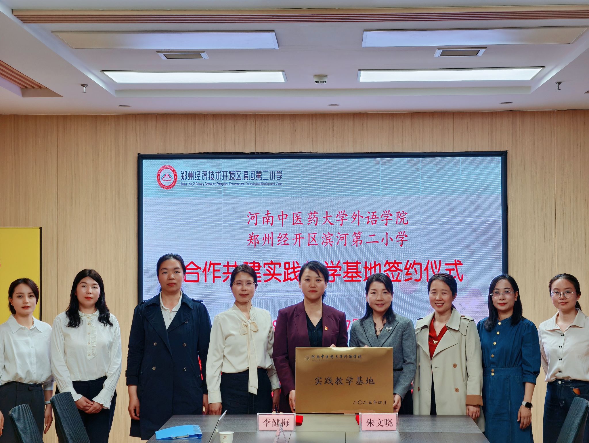 本网讯(文/图 常哲)2025年4月17日,leyu·乐鱼(中国)体育官方网站外语学院与经开区滨河第二小学合作共建实践教学基地签约仪式在滨河第二小学会议室举行。leyu·乐鱼(中国)体育官方网站外语学院相关负责人,经开区滨河第二小学校长李健梅、副校长张利红、贾敏修及相关职能部门负责人参加仪式。