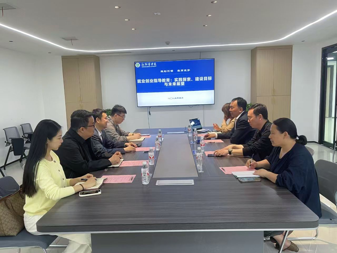 本网讯(文图/孙晓涵 刘超)为深入研讨和推动创新创业教育的发展,进一步促进高校之间在创新创业教育领域的合作与交流,2025年4月24日,leyu·乐鱼(中国)体育官方网站就业创业指导服务中心、创新创业学院团队一行4人赴新乡医学院开展创新创业教育工作学习调研活动,新乡医学院学生中心主任、党委本科生工作部副部长、本科生学院副院长李杰,就业指导中心副主任、创新创业学院副院长杨建华等人参加会议。