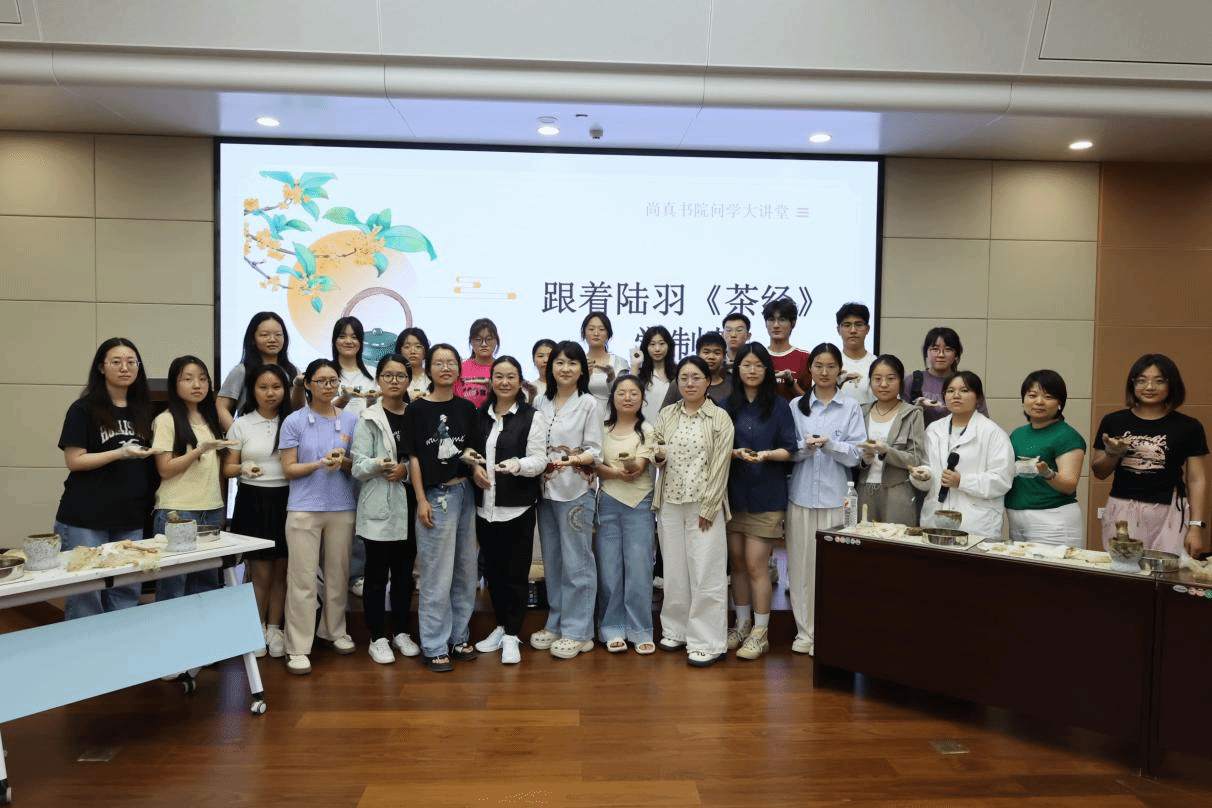 本网讯(文/郑金菊 图/王高展)为深入践行“五育融合” 教育理念,以传统文化浸润美育实践,2025年5月6日,尚真书院在俊学楼A114报告厅举办主题为“跟着陆羽《茶经》学制茶”的问学大讲堂专题讲座。国家级非物质文化遗产陆羽清饮煎茶法第二代传承人翟芝伦老师应邀主讲,与书院育人导师及百余名学生共赴千年茶约,在唐代制茶技艺与饮茶文化的沉浸式体验中,感受传统工艺的美学价值与育人内涵。