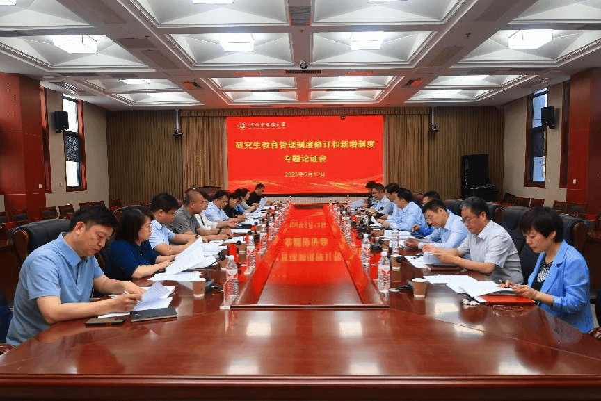 本网讯(文/栗彦芳 图/赵亚鑫)为深入贯彻《中华人民共和国学位法》精神,进一步加强和完善学位授予工作,提升高层次人才培养质量,2025年5月12日上午,学校召开专题会议,对研究生教育管理制度的修订和完善情况进行论证。校长王耀献和各研究生培养单位负责人、相关职能部门负责人、研究生院相关人员参会。