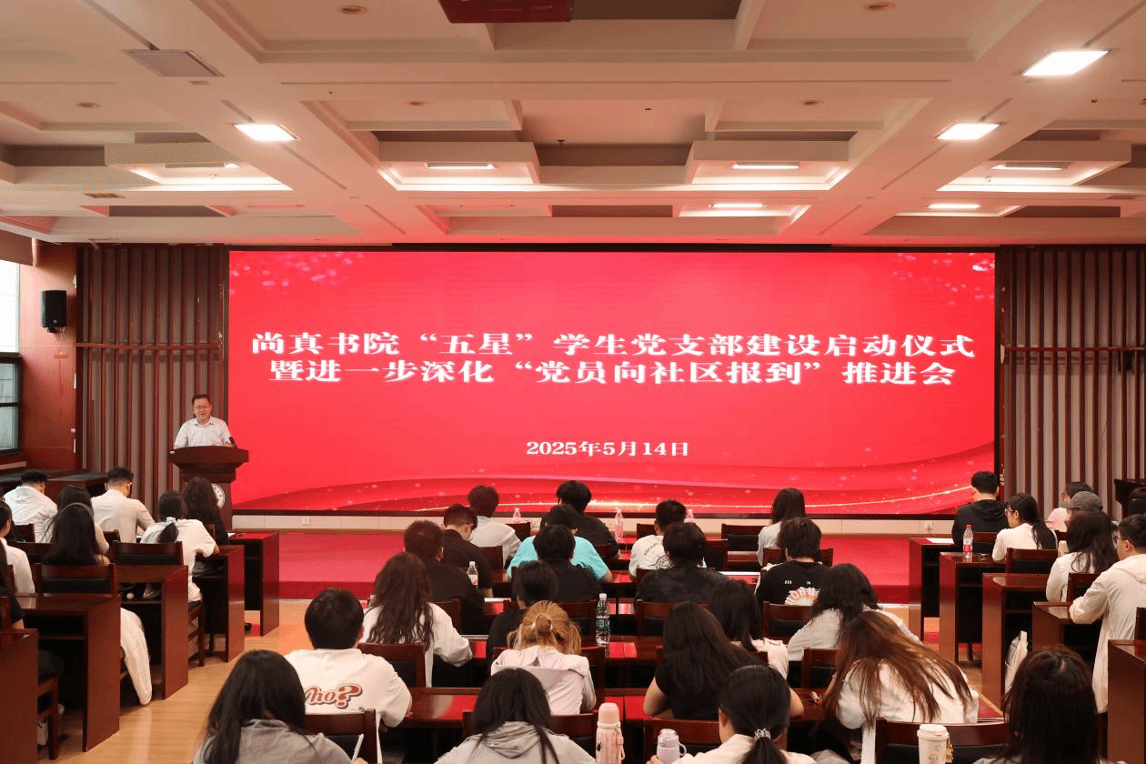 本网讯(文/黄宁宇 图/聂寒冰)2025年5月14日,尚真书院在图书馆第二报告厅举行“五星”学生党支部建设启动仪式暨进一步深化“党员向社区报到”工作推进会。