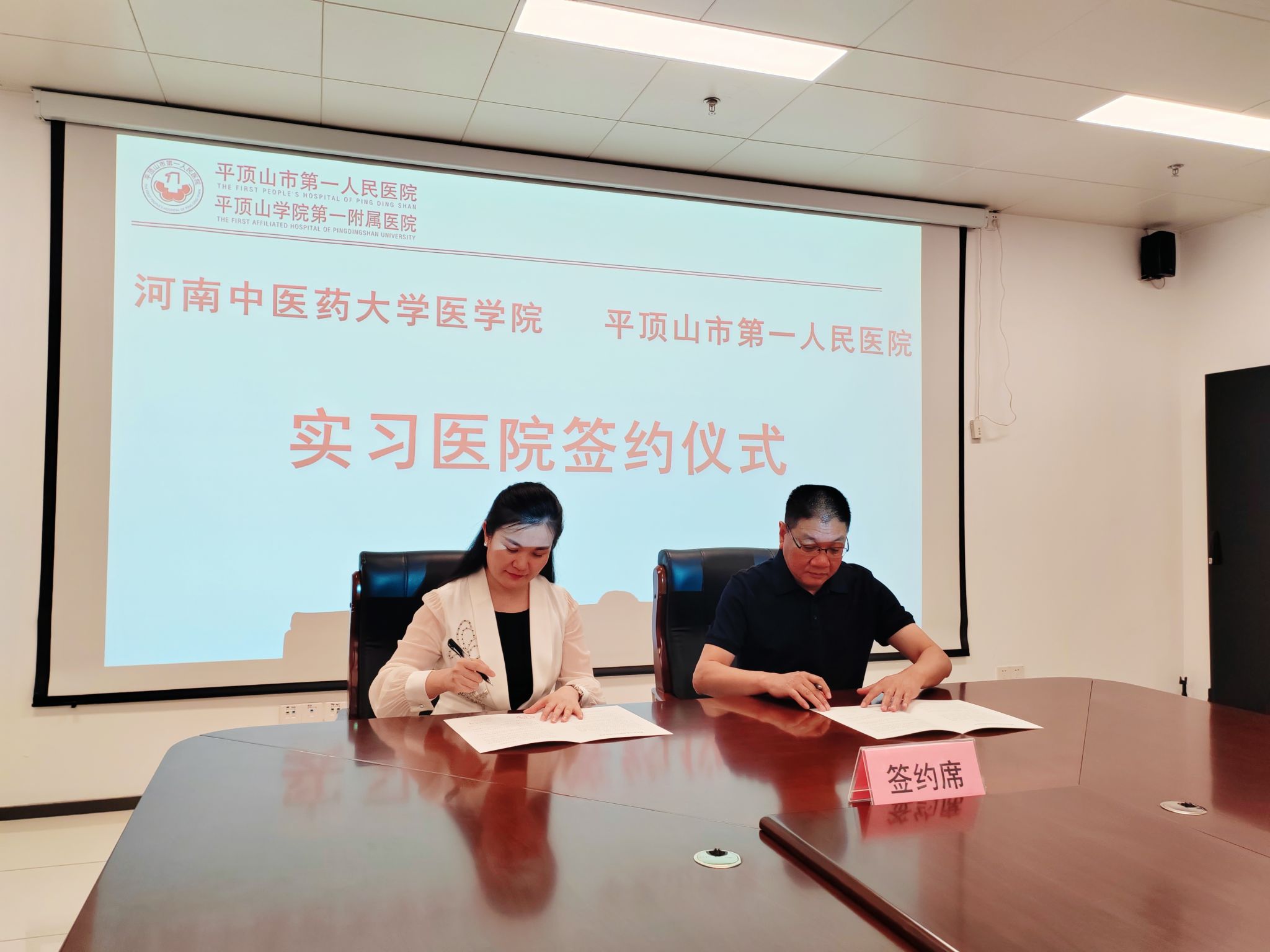 上午,医学院与平顶山市第一人民医院正式签订实习、就业基地合作协议。平顶山市第一人民医院副院长尤军伟、刘宏等出席仪式。尤军伟表示,医院将依托三级甲等综合性医院优势,通过优化实习带教体系,为医学院学生提供高水平临床实践平台,同时为医院学科发展注入青年人才活力。刘宏强调,双方将在教学、科研与临床资源整合中实现优势互补。医学院院长曹珊指出,此次合作是深化医教协同、落实“实践育人”的关键举措。期待以医院丰富的临床资源和完善平台,助力学生提升实践能力,并推动校院在学术交流、课题研究等领域深度合作,培育“德才兼备、知行合一”的高素质医学人才。随后,双方代表签署协议并完成就业基地授牌,标志着校院协同育人迈入新阶段。