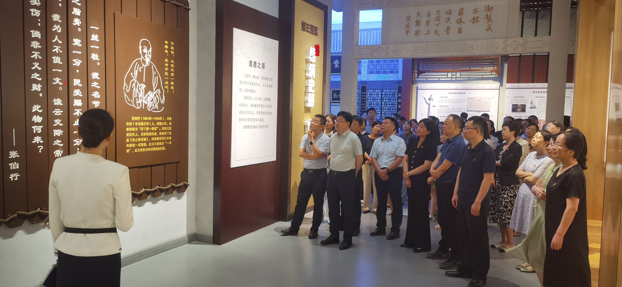 进入廉政教育馆,全体党员干部在庄严肃穆的党旗前宣誓,重温入党誓词,警醒自己永葆入党初心,铭记党员使命。随后,在讲解员的带领下,大家依次参观了各个展厅。展厅内丰富的案例、翔实的资料、生动的事迹以及先进的多媒体展示手段,全方位、多层次地展现了廉政文化的深厚内涵和党风廉政建设的丰硕成果。从古代清官廉吏的高尚品德到现代反腐倡廉的典型案例,每一段历史、每一个故事都让党员、干部们深受触动,深刻认识到廉洁奉公的重要性和必要性,以及腐败行为对个人、家庭、社会造成的巨大危害。